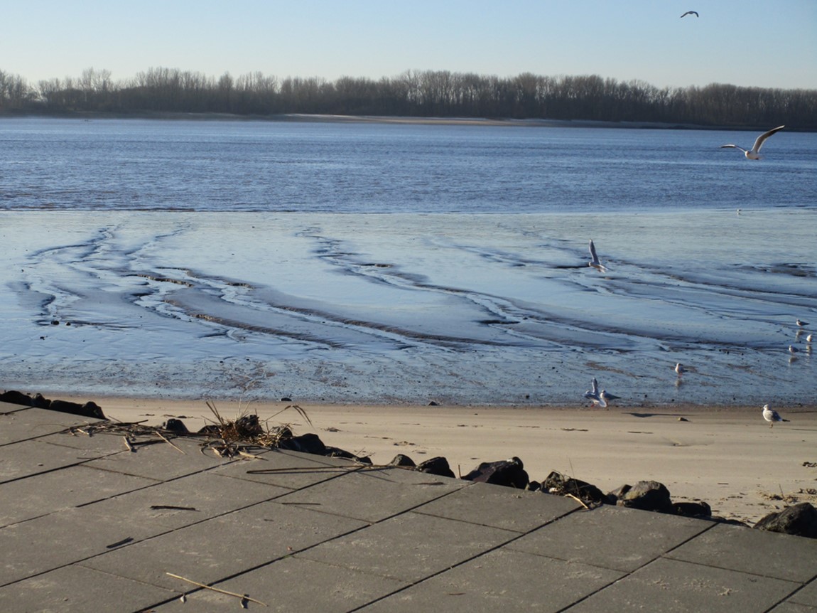 Gen Schulauer Hafen, Höhe Badebucht – „heiss“ und Weiss, Raureif in allen Schattenlagen.