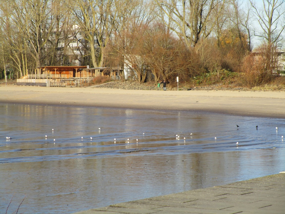 Nach dem Sonnenuntergang des Sonnabend lockt blauer Himmel Sonntag morgens Richtung Schulauer Hafen.