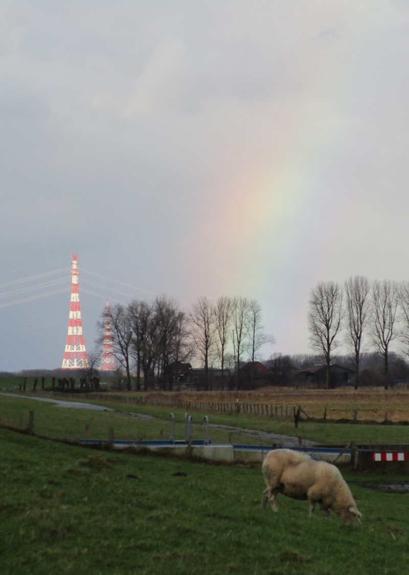 Hoch oben auf dem Elbdeich, Sperrwerk Wedeler Au – gezoomt: Da also, Hof Fährmannssand, steht der Geldtopf!
