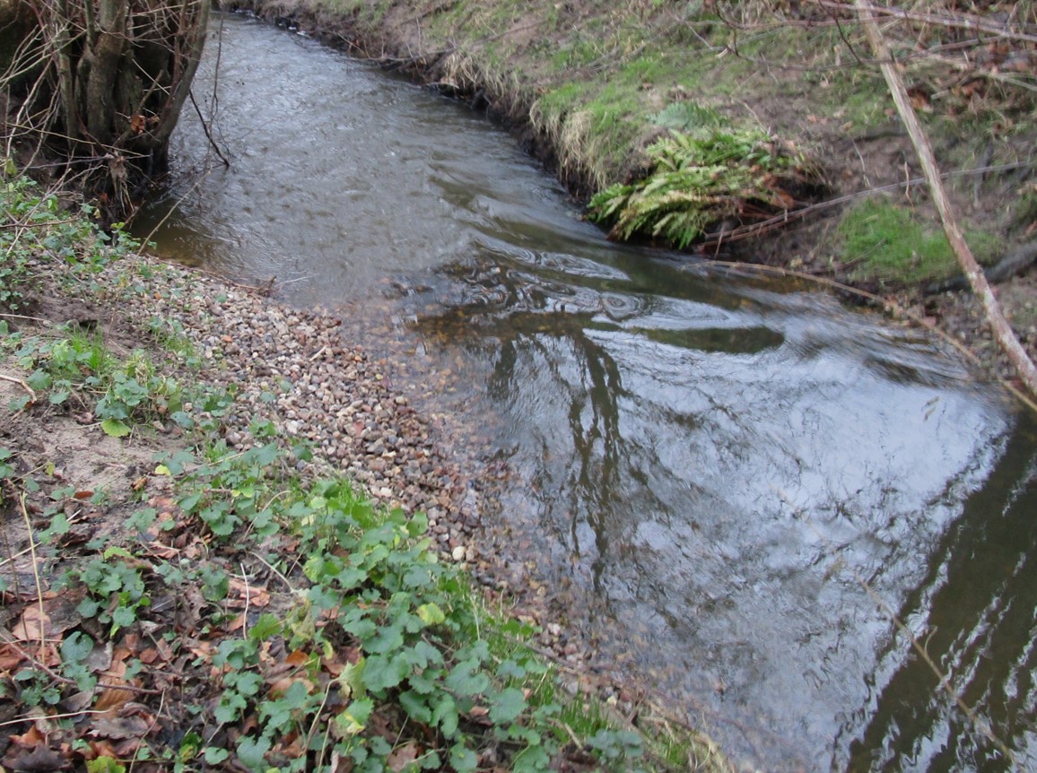 Vorweihnachtlich am rauschenden Bach (vor nicht allzu langer Zeit rauschte es hier noch nicht wieder) – Hochwässer können frei abfliessen, Mittel- und Niedrigwasserbereich sind gestützt.