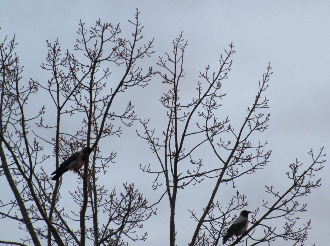 Auch die beiden Nebelkrähen in den Spitzen der Innenhofaltbäume können`s kaum fassen.