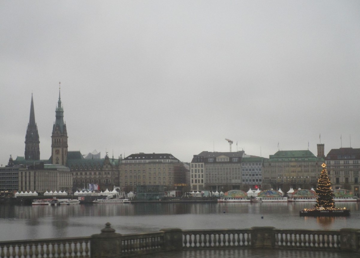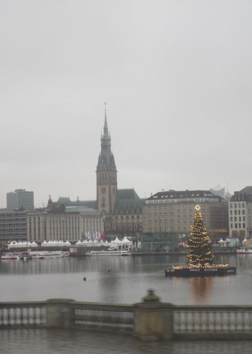Weiterfahrt gen Westen, HH-Altona, Wedel – Rathaus und Kirchen, Weihnachtstanne auf der Binnenalster.