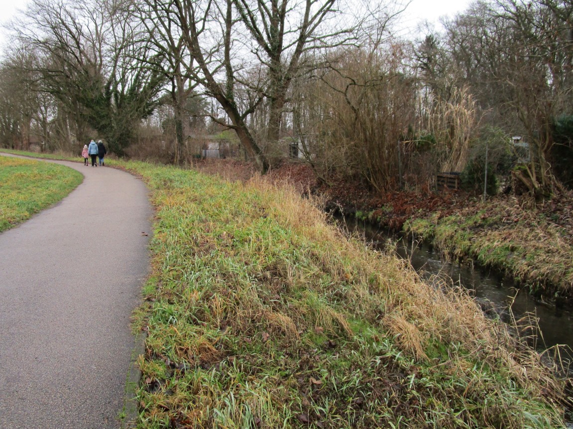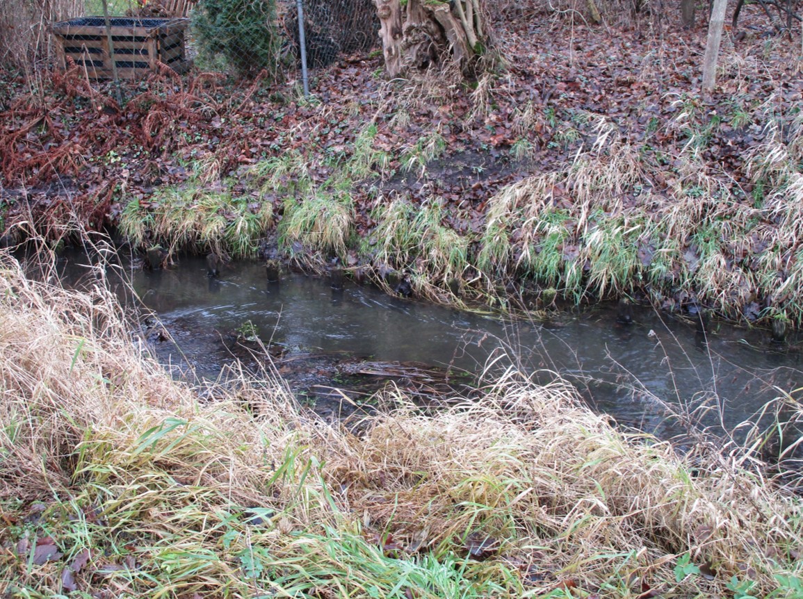 Ansonsten würde die Umlegung ja bedeuten, dass der Bachverlauf NOCH tiefer verlegt werden müsste. Letztlich würde hierdurch die Wiesenfläche ENT- statt bewässert. – Und große Mengen Wiesenbodens müssten abgebaggert und anderswo untergebracht werden.
