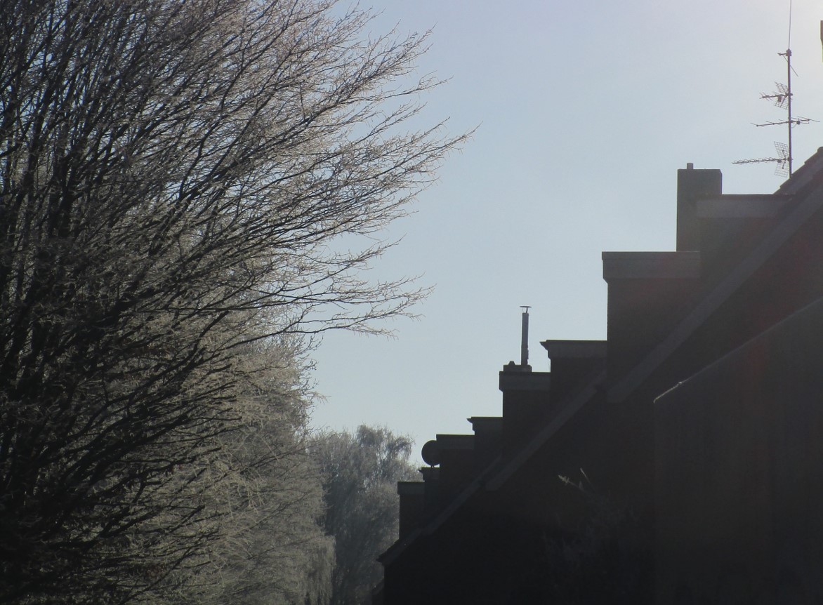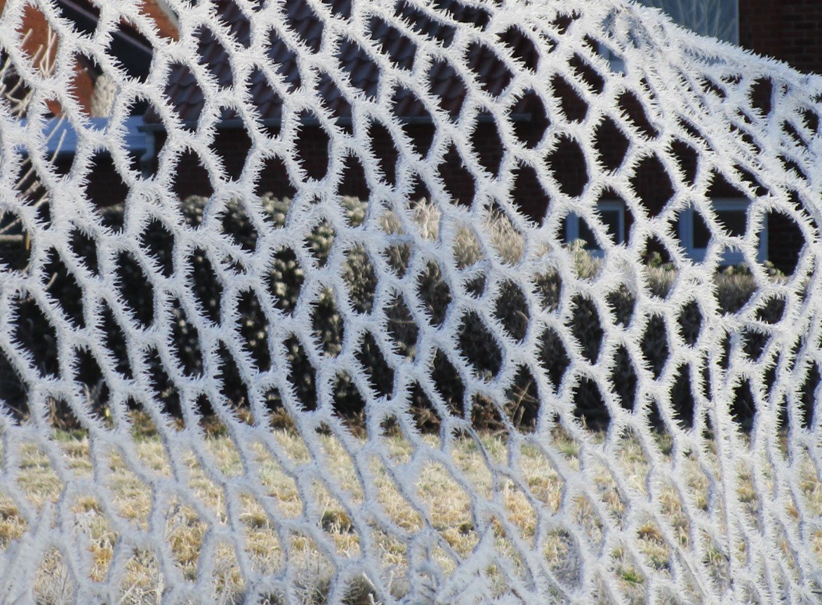Abgebogen – drahtiger Raureif an der Helgolandstraße.