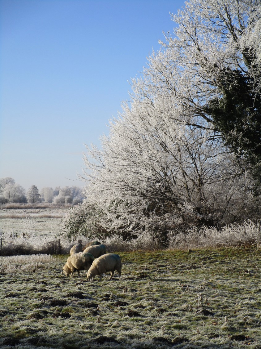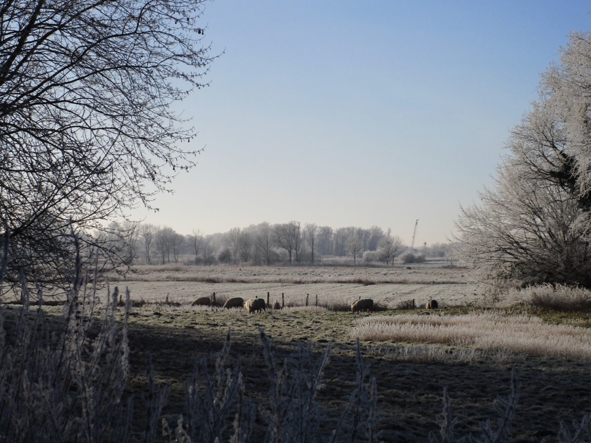 Wedel, Winterpracht – Raureif, Bäume, Elster, Schafe.