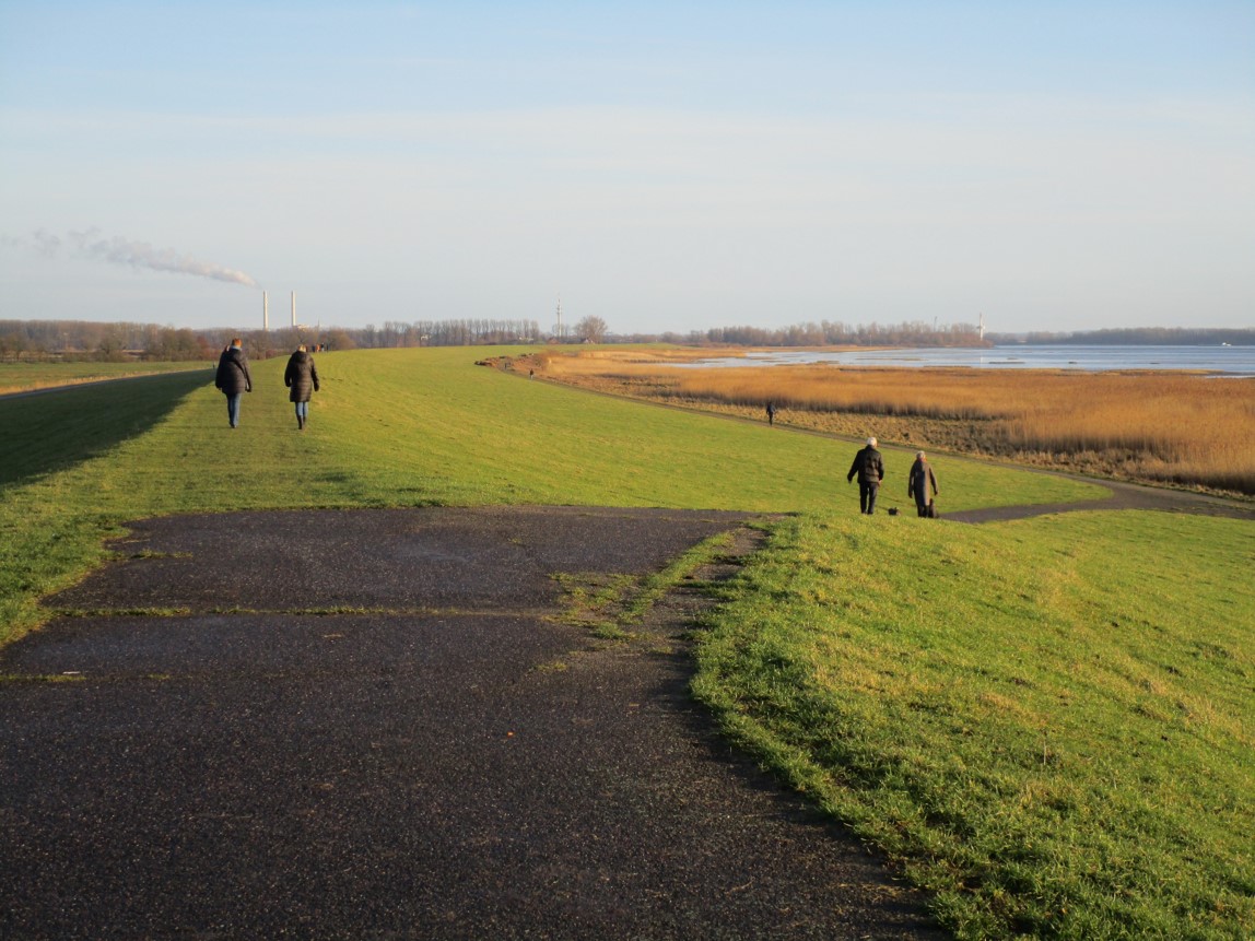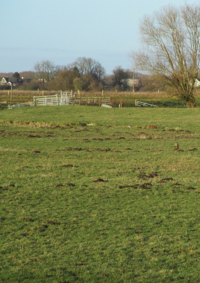 Blick durchs Brunnenschutzgebiet – perspektivisch immer wieder interessant. Wo am Deich der Sonnenstand tief erscheint, ist er hier „höher“.