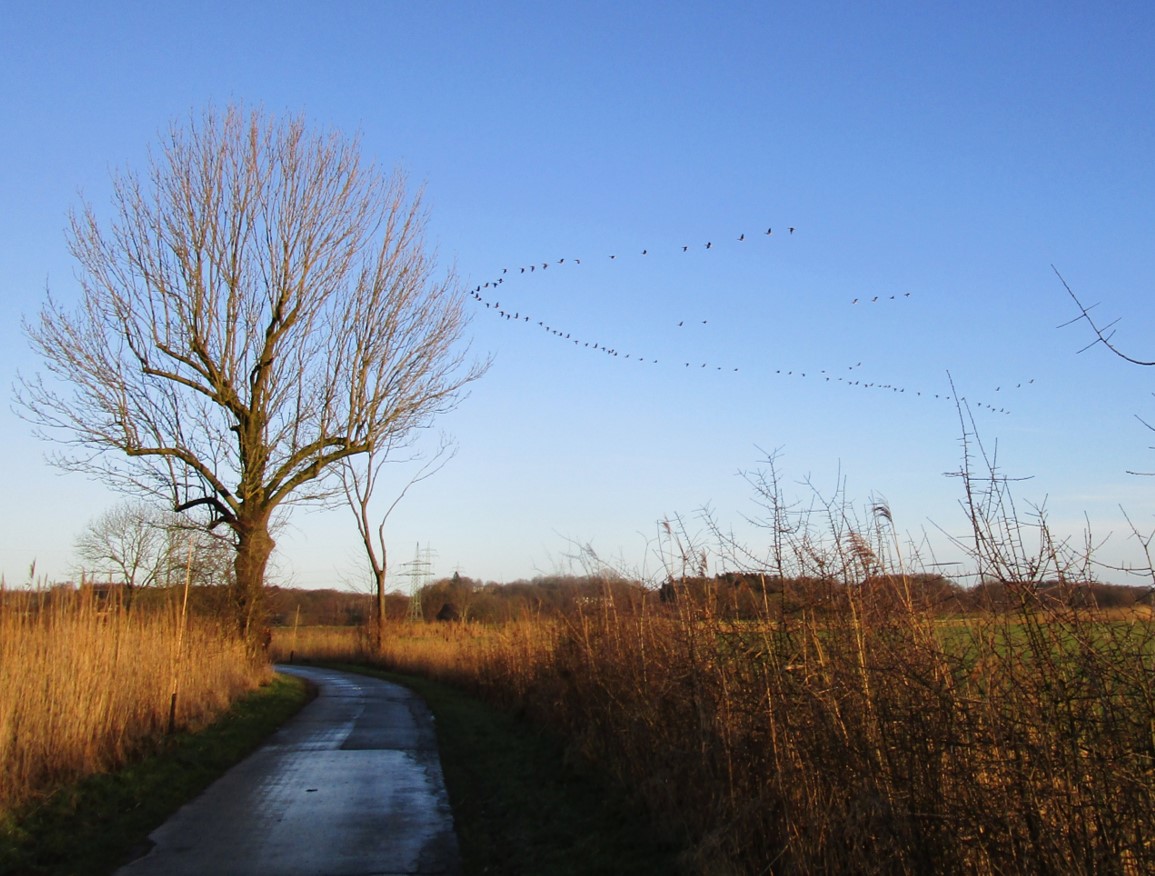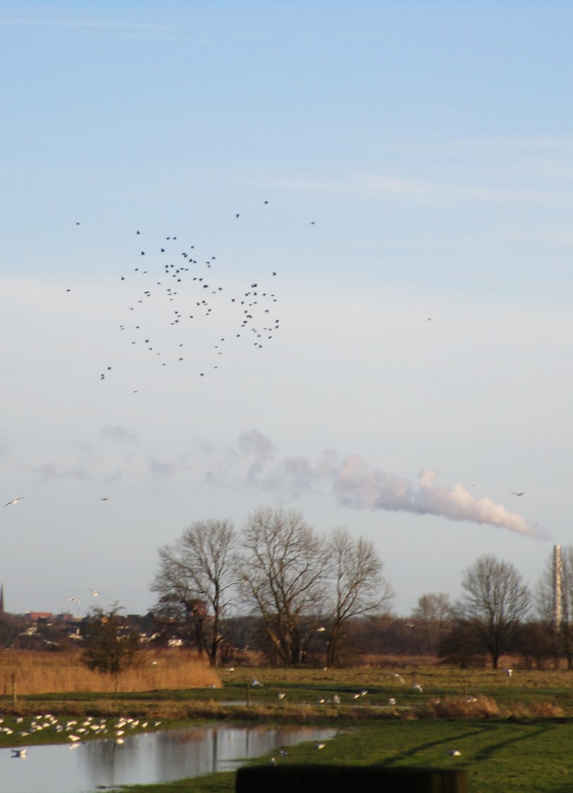 Am Elbdeich Fährmannssand trennen sich unsere Wege – kleine Runde zur Stadt, ich über Hetlingen. An der Vogelstation Wedeler Marsch sammeln sich Nonnengänse. Etliche kleine Schwärme sind in der Luft.