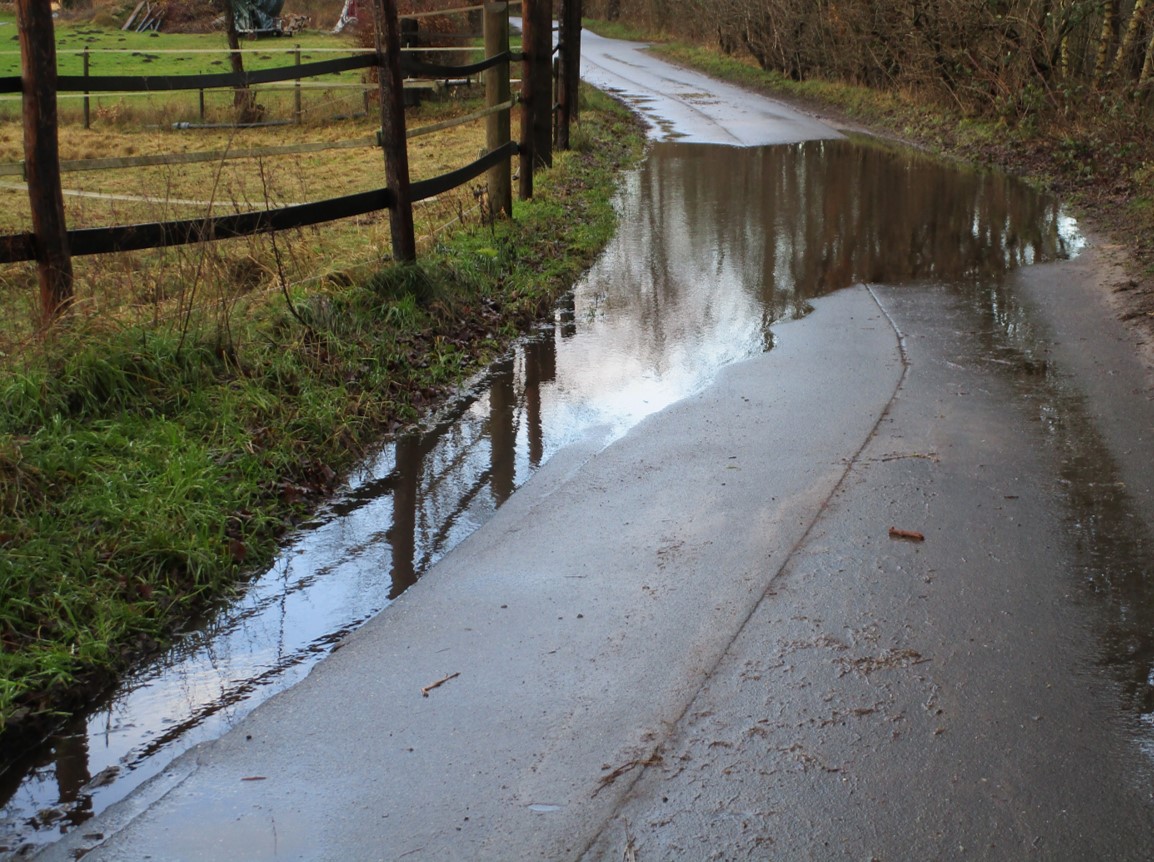 Auch gut voll! – Zum Glück kenne ich die Stelle – kein Schlagloch als Radler-Stürzer drin verborgen.