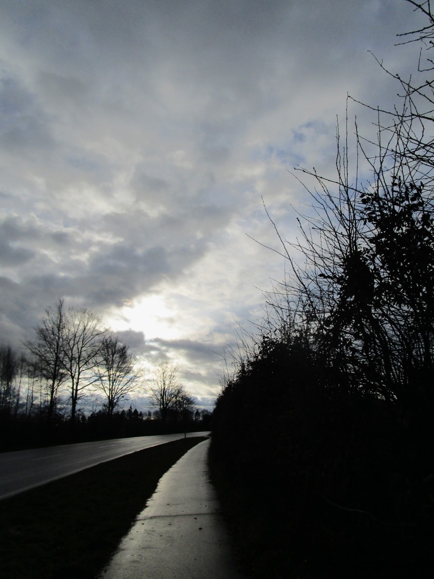 Zurück gen Wedel, entlang der B 431 – die Sonne guckt … gelegentlich, grimmig.