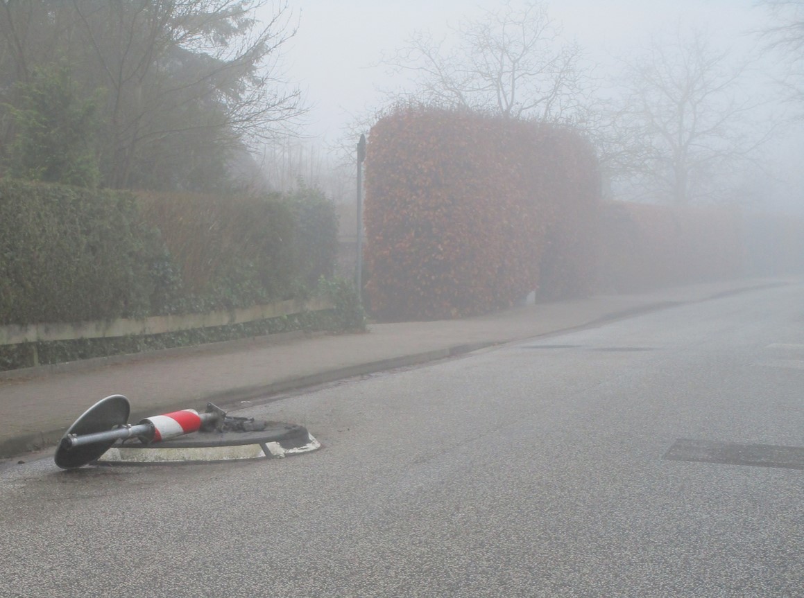 Die Rückfahrt ins Städtische gestaltet sich krass. Der Nebel wird eher dichter. Überholende Autos – meine Güte! Ohne Hecklichter, offenbar nur mit automatisch schaltendem Schwachfrontlicht unterwegs !!! – werden fix verschluckt. Angesichts deren Tempo hoffe ich mal, dass die Zahl der Auffahrunfälle gestern nicht allzusehr in die Höhe schnellte.