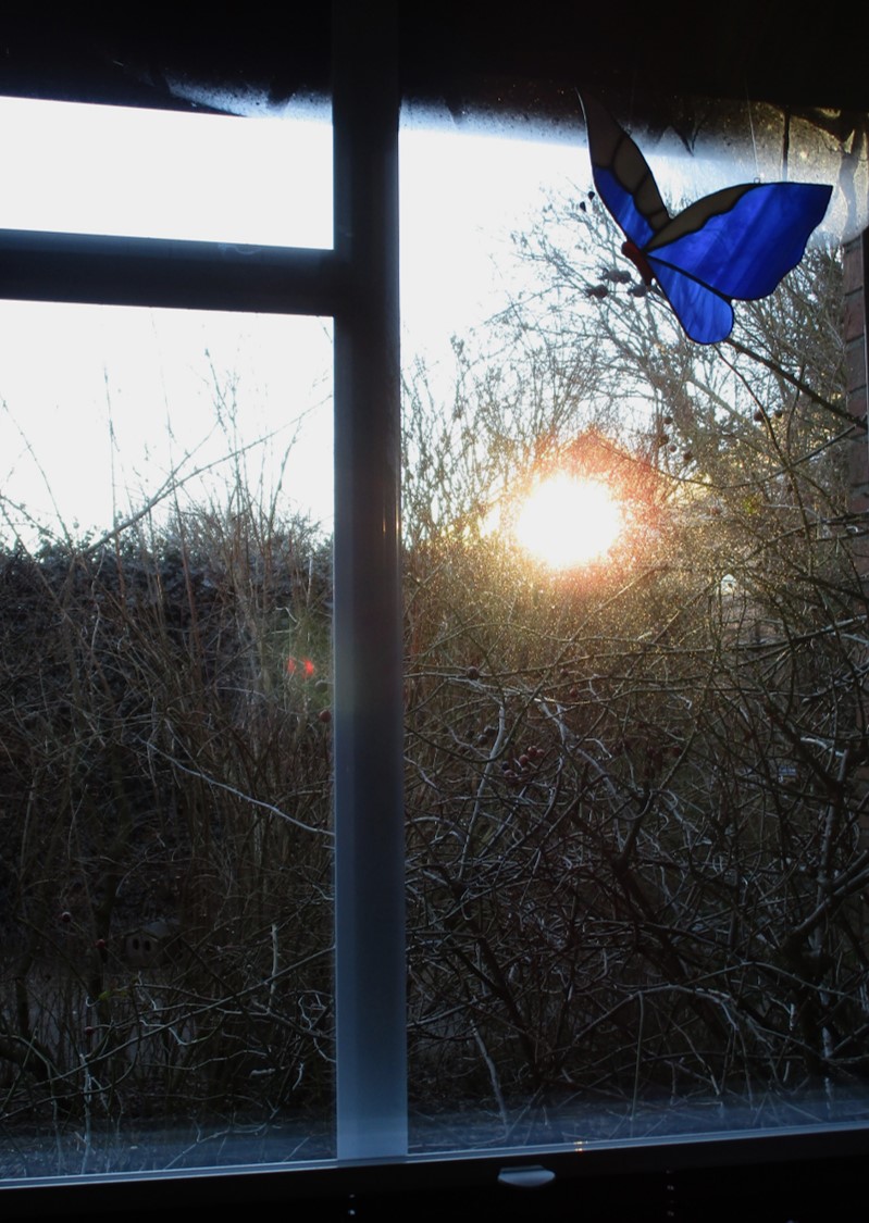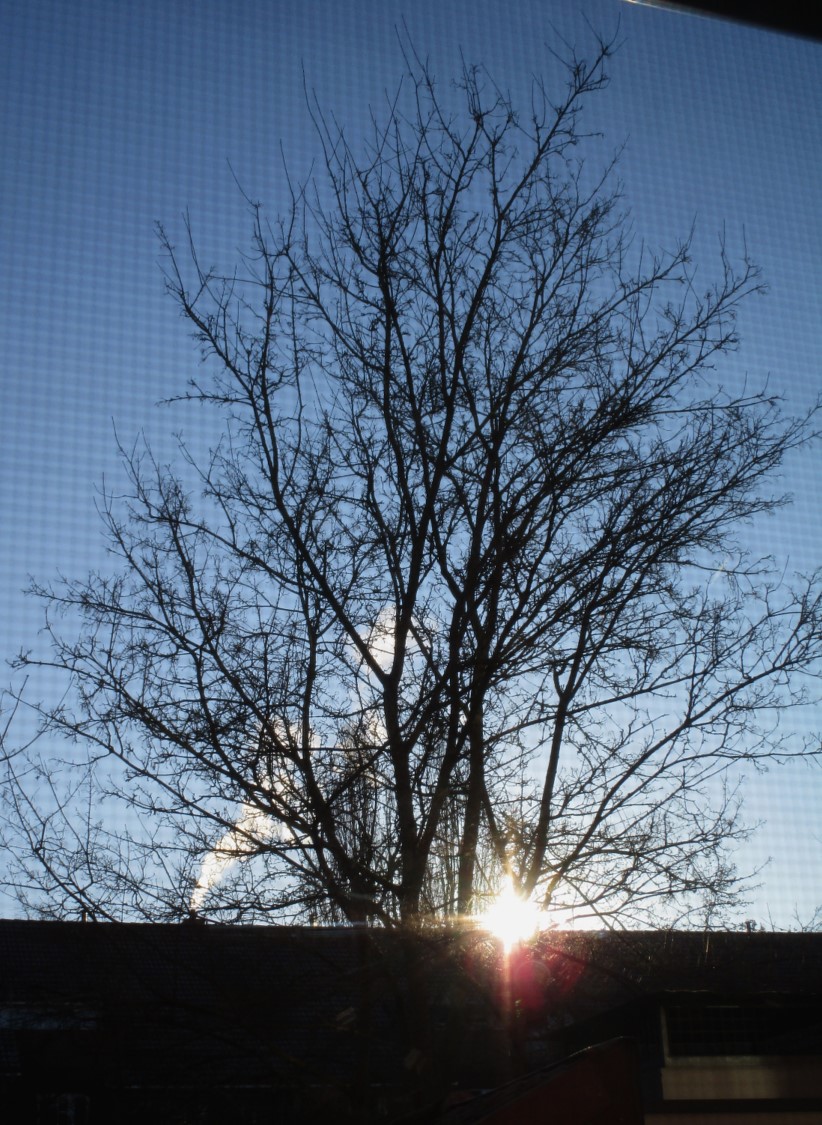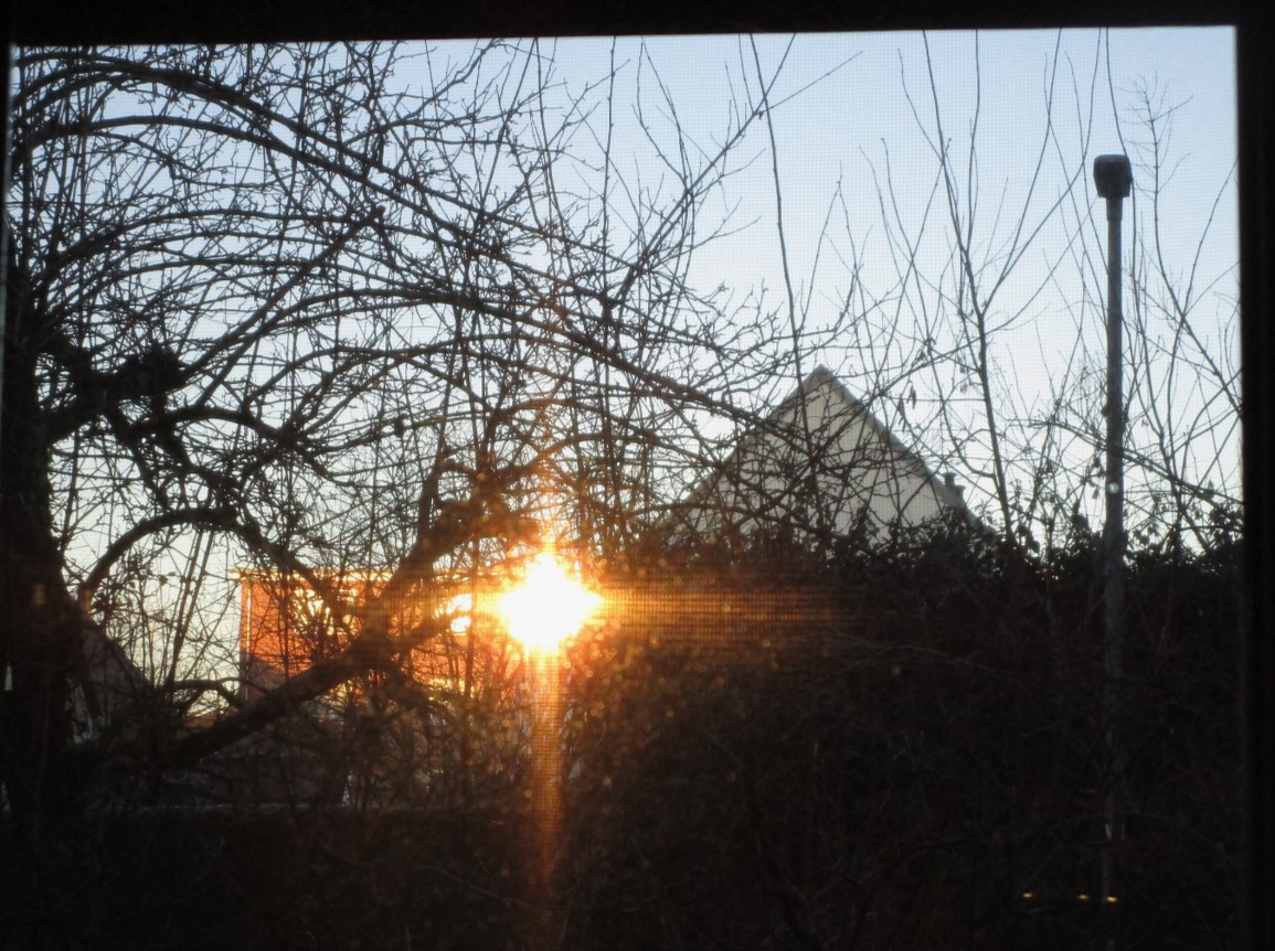 Der zweite, wahre Sonnenaufgang für uns findet selbstverständlich im Osten statt, so bei 9.10 Uhr – verzögert vom langen Dach einer Wohnanlage.
