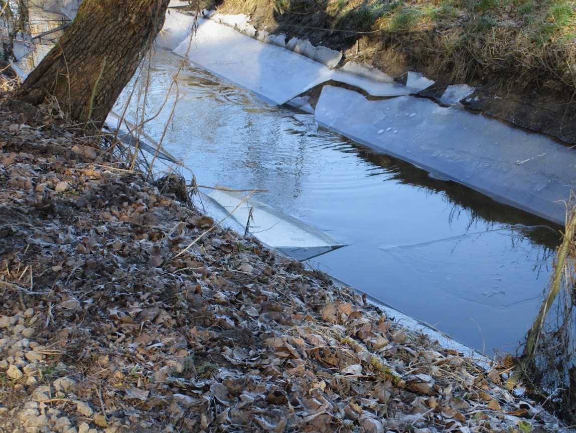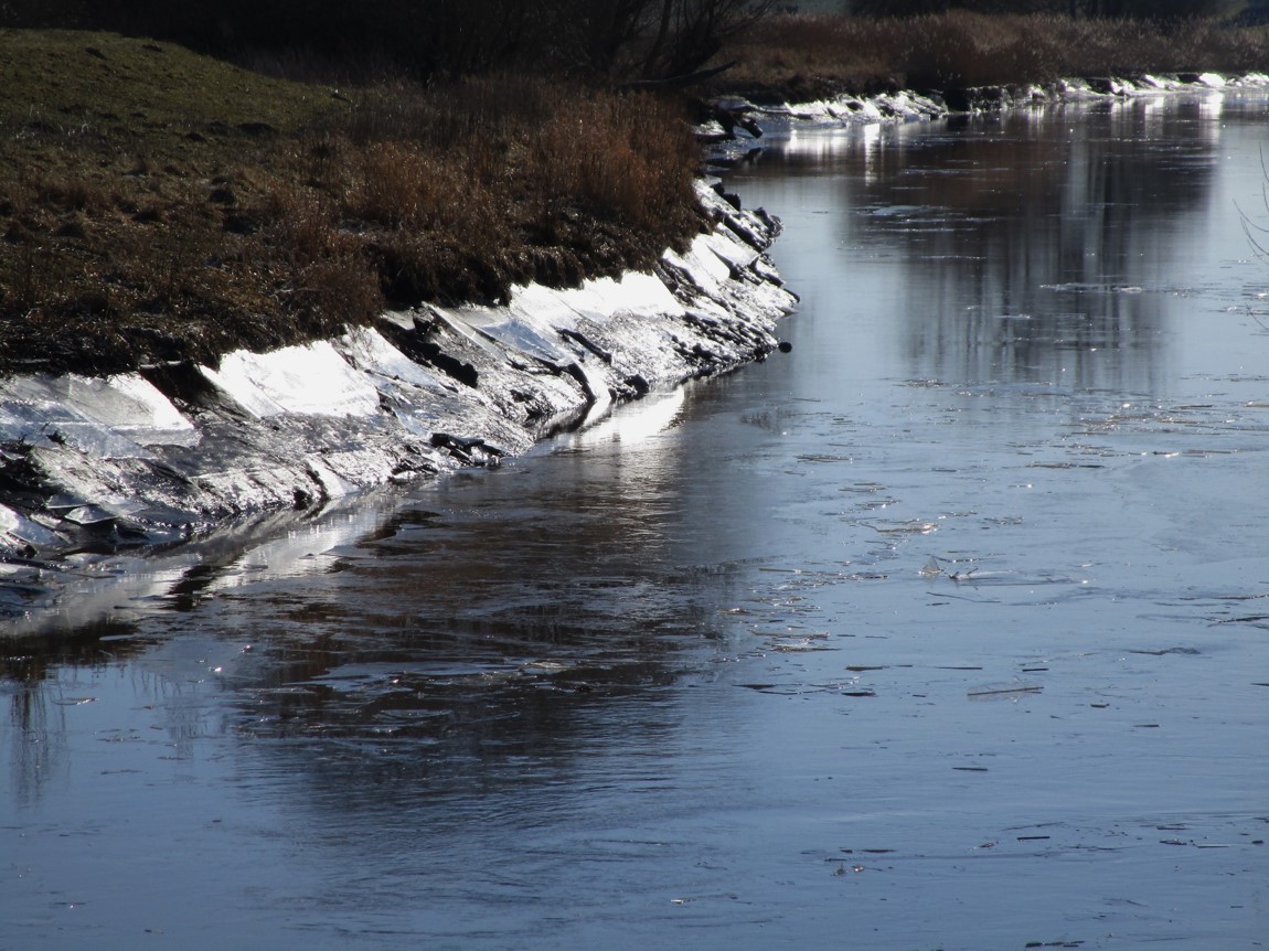 Ringsum kracht es. Der sinkende Wasserstand lässt die Eisdecke brechen, ins Wasser fallende Brocken schlagen Wellen.