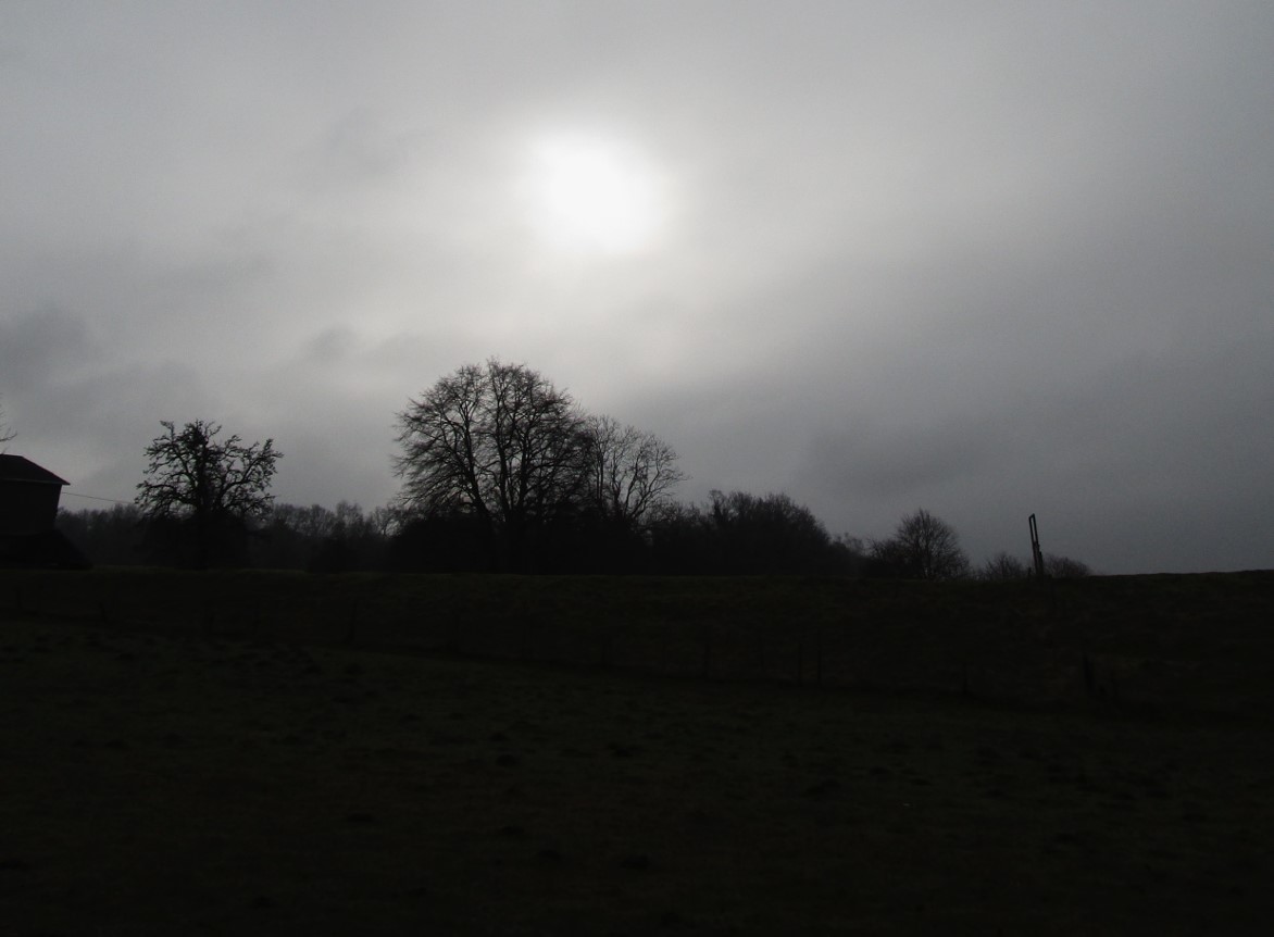 Blick über den – ogottogott – gebaggerten GrenzMarschgraben Lanner – Weiden-Silhouetten auf Hetlinger Seite.