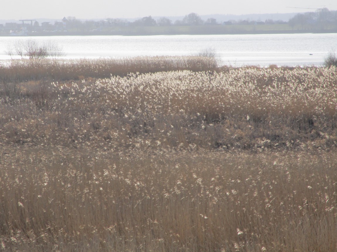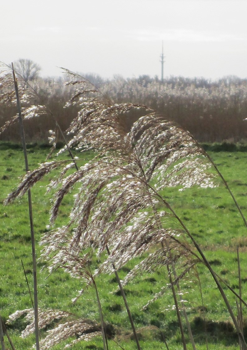 Auf dem Elbdeich – Vorjahrsreet steht angesichts nicht besonders starker Winterstürme und -hochfluten noch in großer Masse im Vorland.