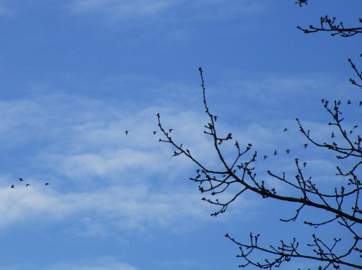 Immer wieder interessant – da äsen die vor sich hin, vorn staut das Hindernis, hinten schiebt`s. Wie widerwillig schwimmen vordere Gestuppste rüber, andere flattern wie unbeholfen auf, sehen zu, keine nassen Füße zu kriegen.