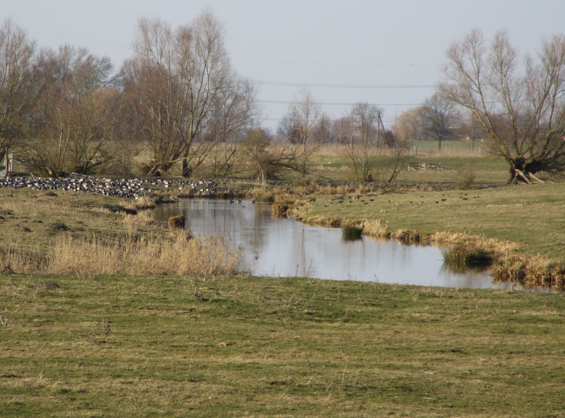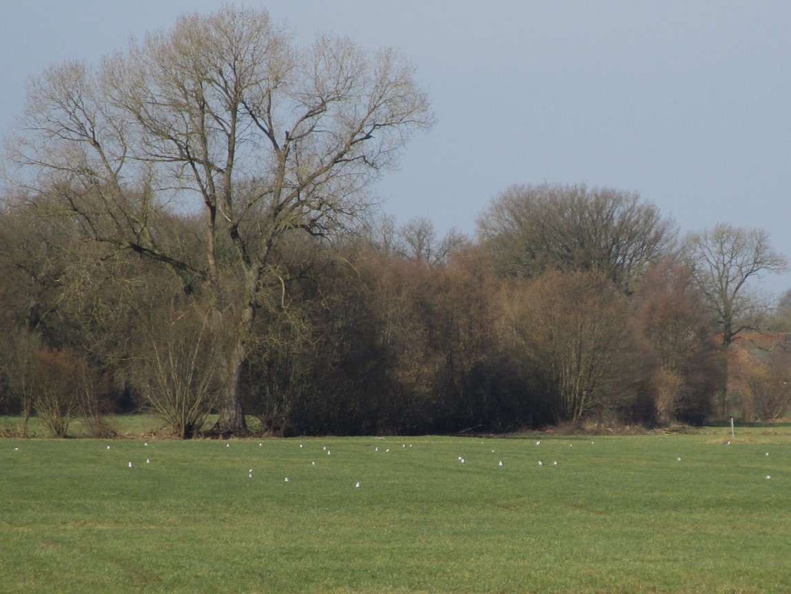 Auch querab Giesensand, am eingestauten Marschgraben, hält sich ein großer Schwarm auf (hier nur der östliche Zipfel im Foto).