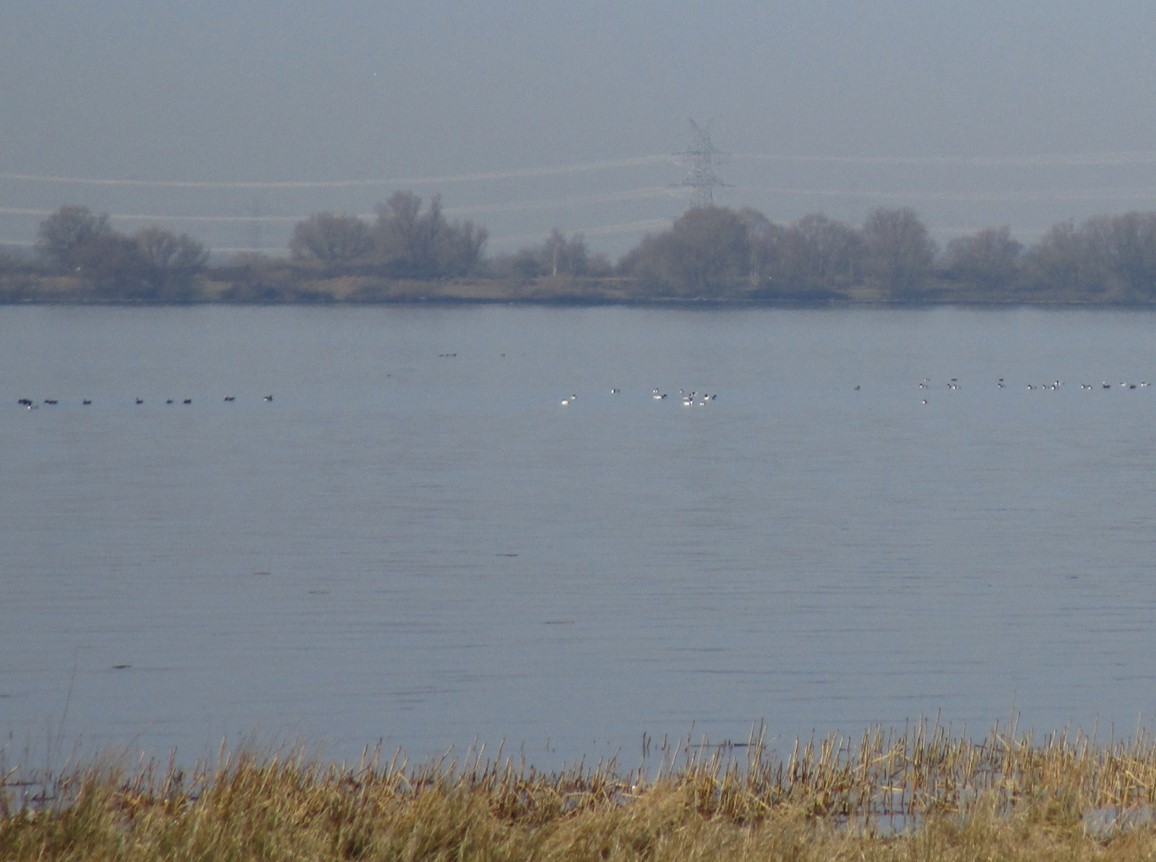 Ein Vogelkieker mit „großer Optik“ informiert mich, dass auf der ruhigen Wasseroberfläche Pfeif-, Krick- und Brandenten (die ich in der Regel hier im Blog Brandgänse nenne) zu beobachten sind.