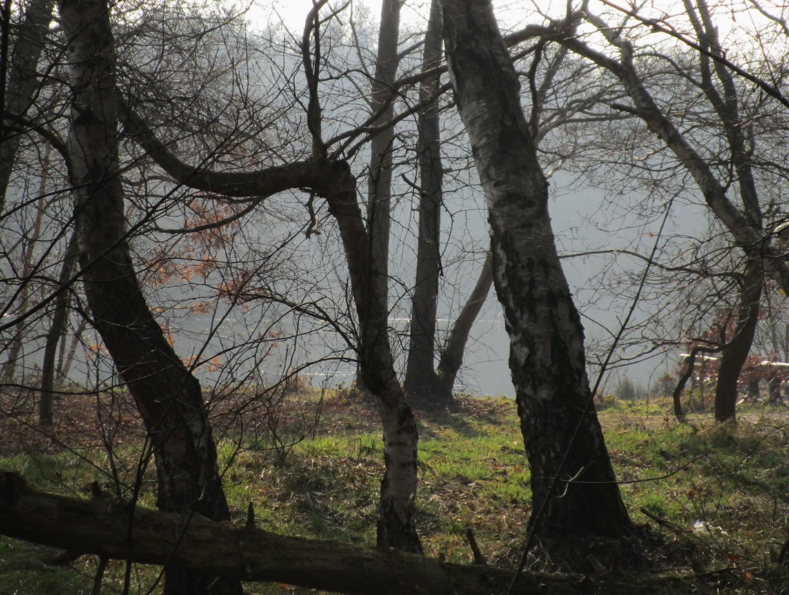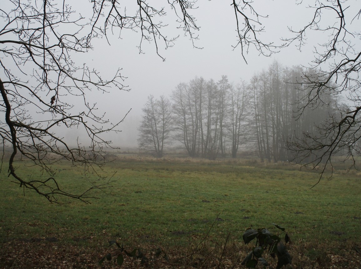 Im Kessel der Bäume liegt ein Feuerlöschteich – über seinem schattig-kühlen Wasser kondensiert die hohe Feuchtigkeit der sonnendurchwärmten Luft. Nebel hat sich gebildet, hält sich länger.