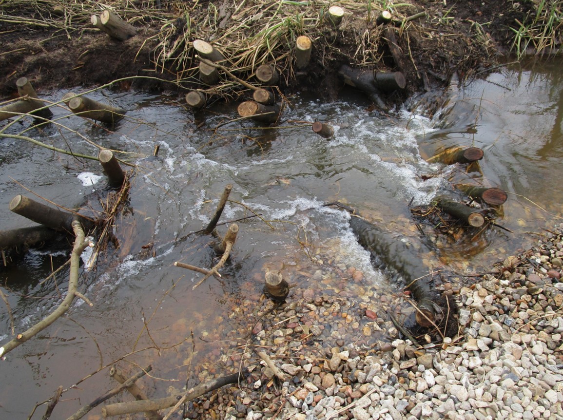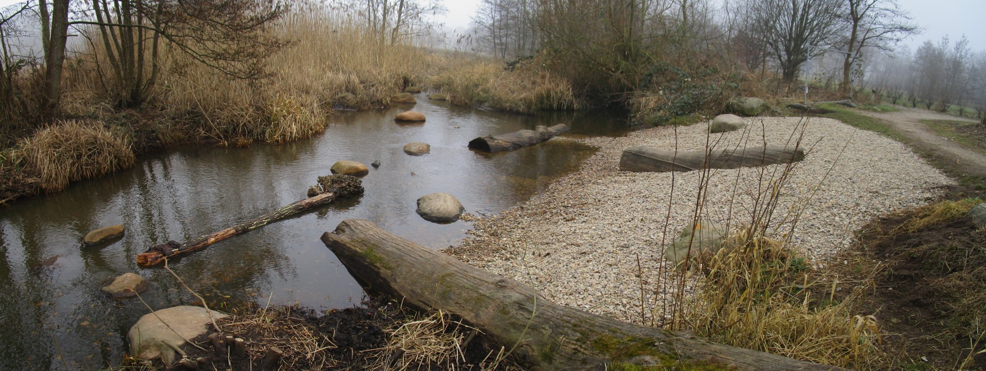 Ein kleiner Damm ist Richtung eines ufernahen Stamms entstanden. Ständiger Wechsel, Dynamik folgt hier Besuchsaktivitäten.