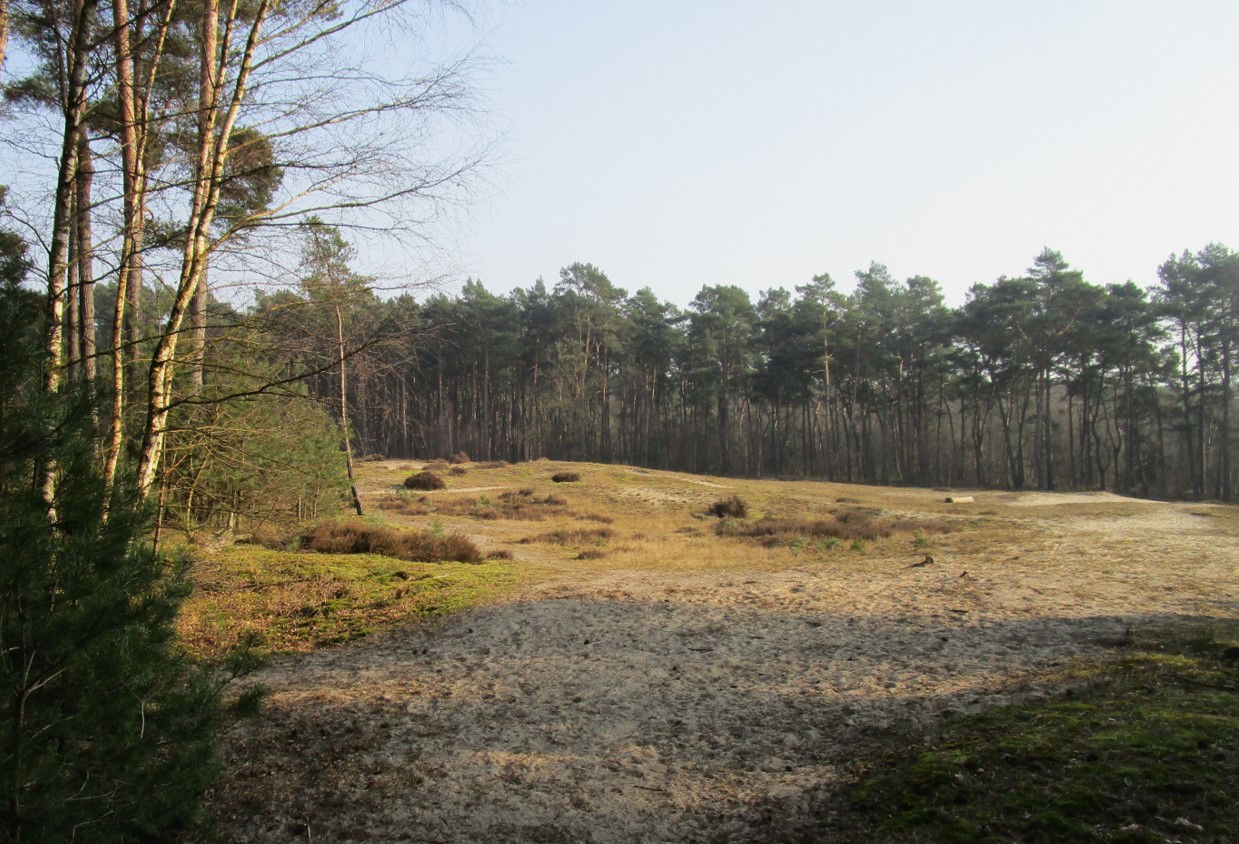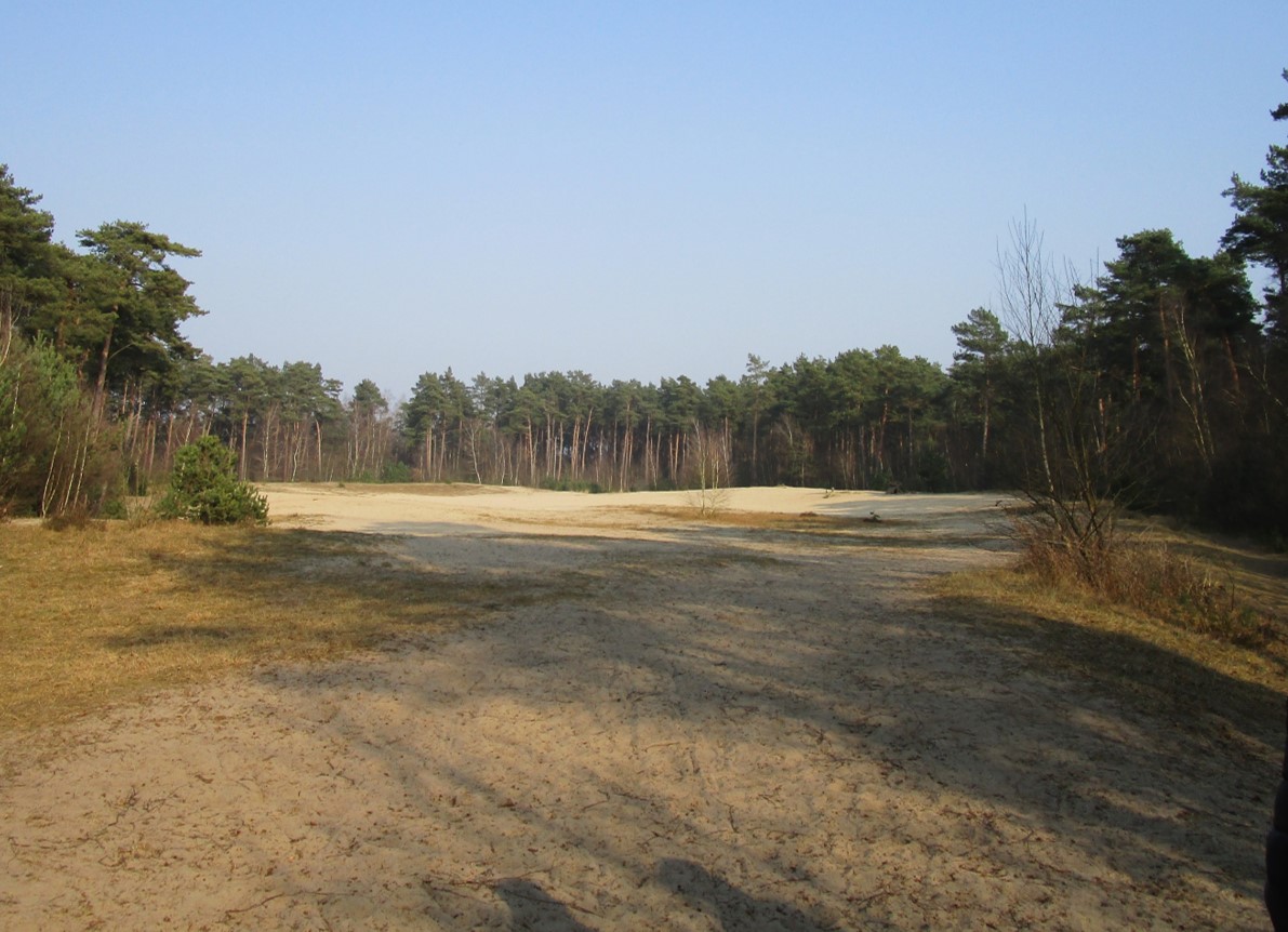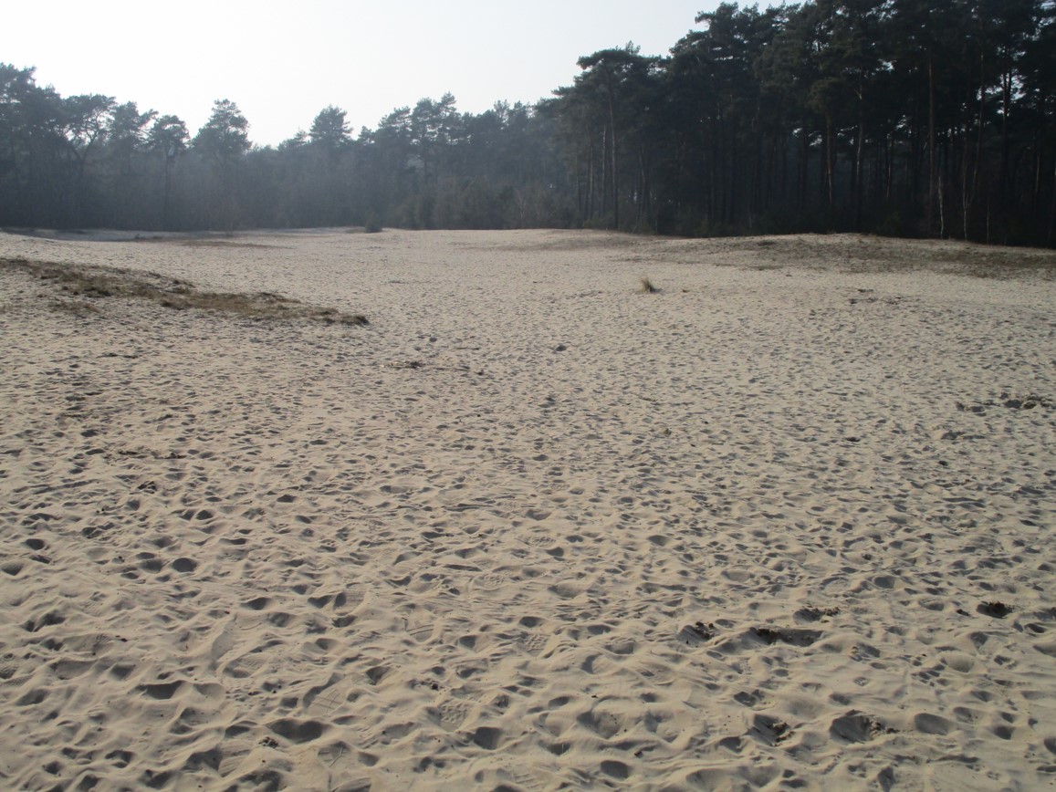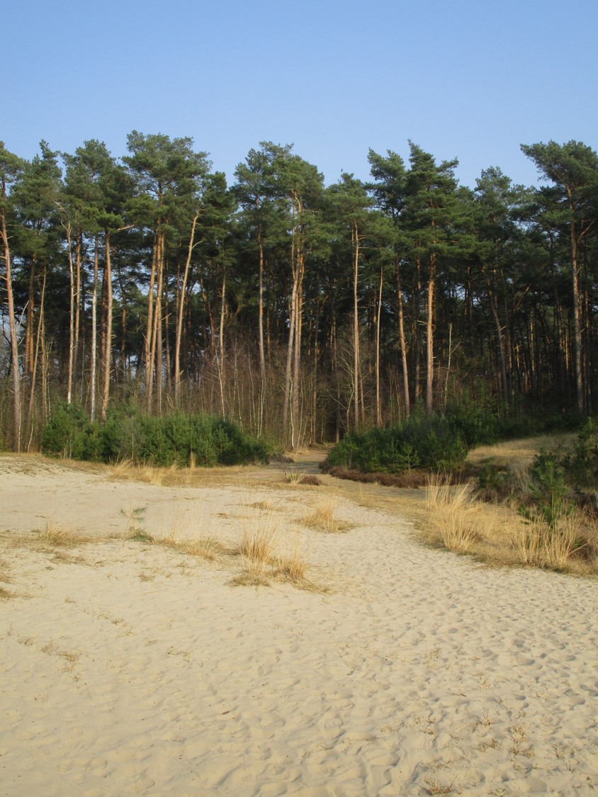 Dynamik der ehemaligen Dünen ist im Umfeld von Wegen, Straßen, Nutzland nicht vertretbar, so dass die einst zum Festlegen der Dünenwanderung vorgenommene Aufforstung ringsum erhalten bleibt.