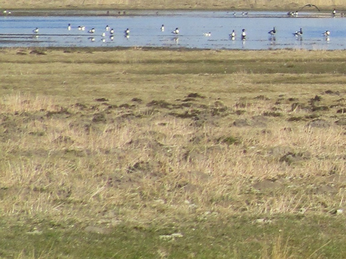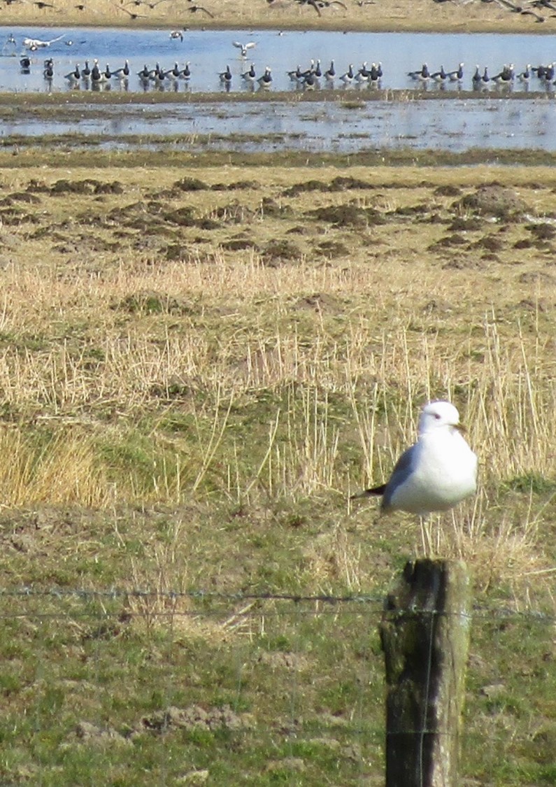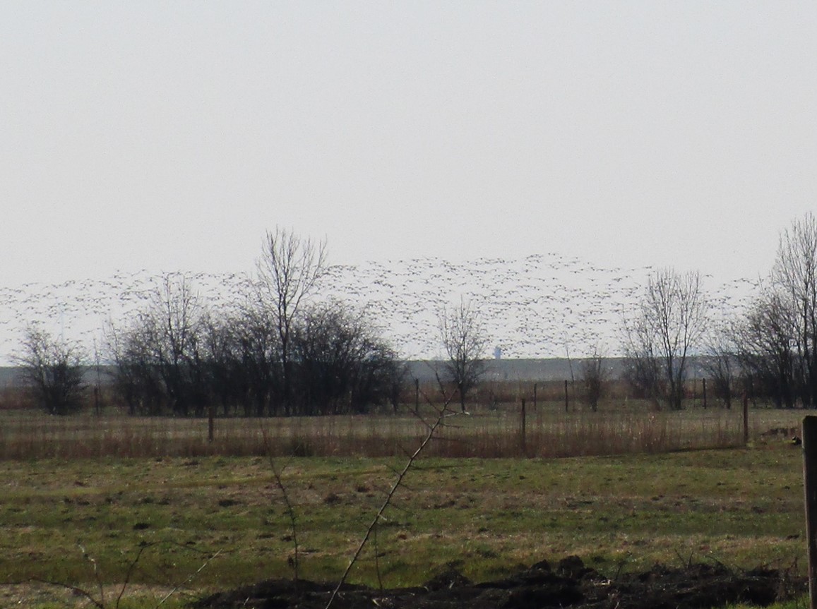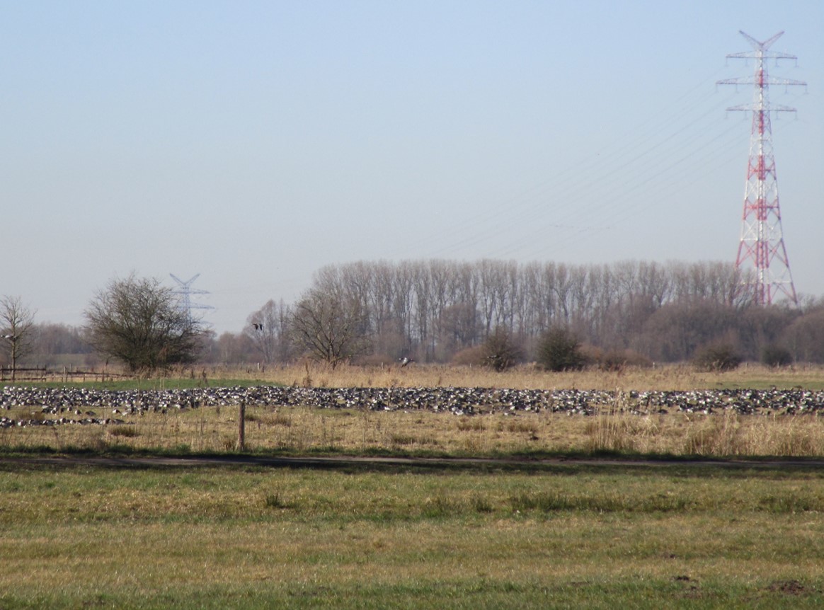 Nördlich Idenburg, Blick Elbdeich – da wurden tausende Nonnengänse wieder einmal hochgebracht, ihr Lärm schallt über die Marsch.