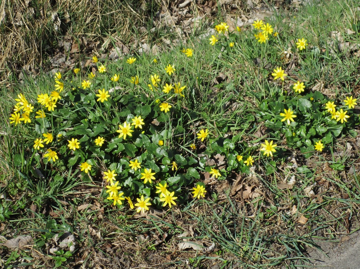 Dichte Polster Scharbockskraut finden sich an kleinklimatisch bevorzugten Stellen, auch …