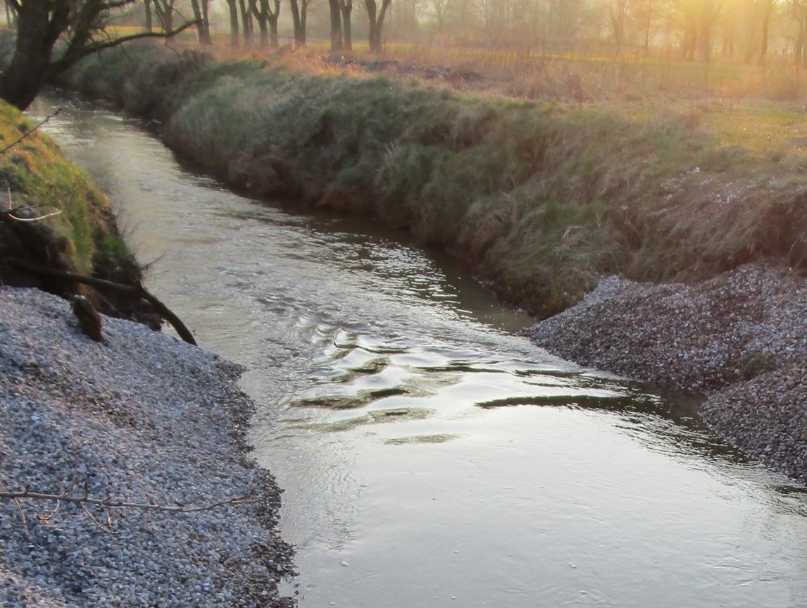 Das alles geschah vor knapp 2 Wochen. Morgen kommt, so alles klappt, etwas bachauf Kieslieferung für ebenfalls verabredete Rauschengestaltung. – Wäre doch gelacht, wenn aus Einöde nicht ein lebendiger Bach entstehen könnte ! ? !