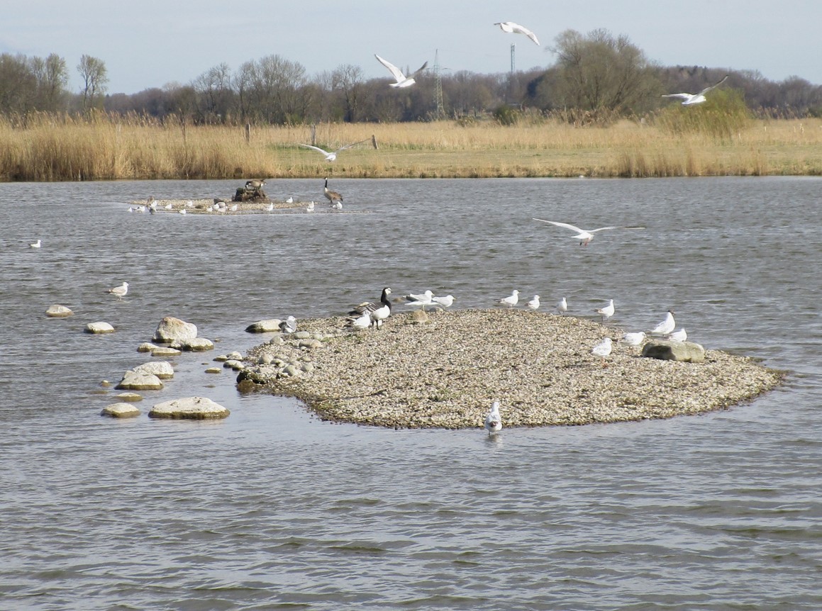 Wind und Wellen, neue und wieder von Bewuchs freigemachte Kiesinseln – nein, Silberreiher sind hier nicht.