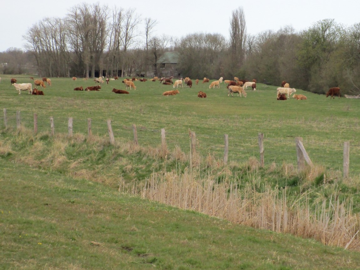 Im Weiterradeln – Giesensand hat die Robustherde ins Freie gelassen. Erste Kälber sind geboren, die Zahl wird angesichts der weiblichen Tiere noch Richtung 80 Stück steigen.