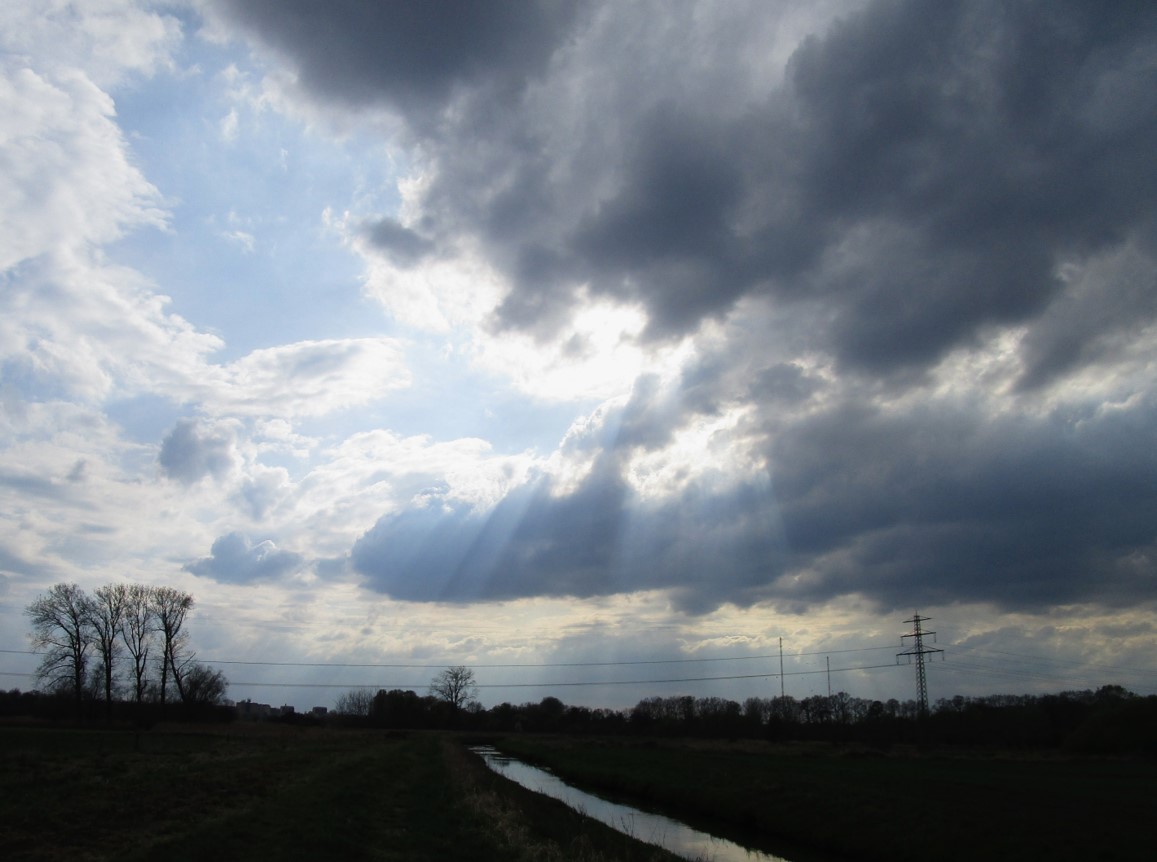 Heran zieht das (Abend des 16. April 2025), was uns in den vergangenen Tagen ordentlich feuchte Böden und Gewässerabflüsse gut über Mittelwasser produzierte.