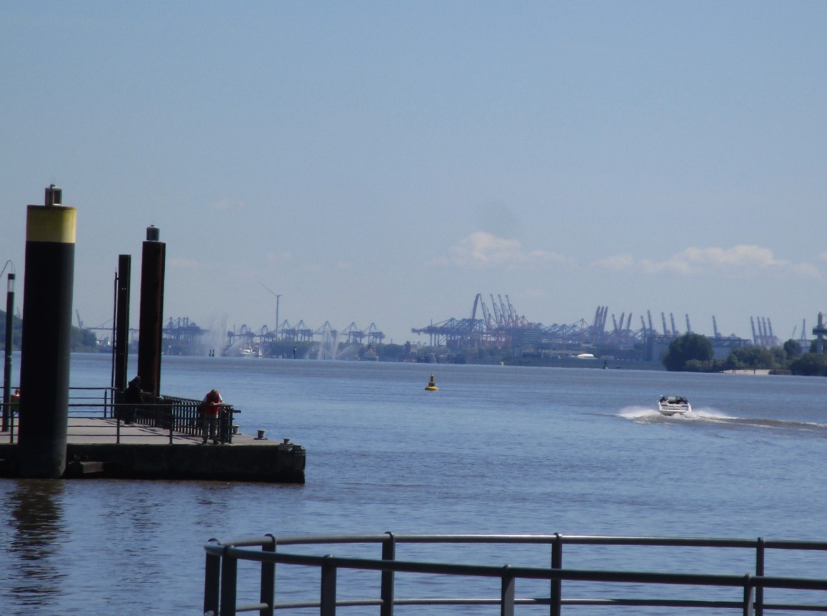Hafengeburtstag Hamburg 2025 – mancher macht sich verspätet auf den Weg, den Fontänen am Horizont entgegen.