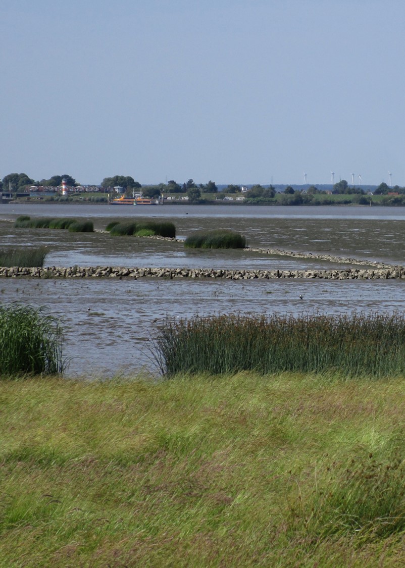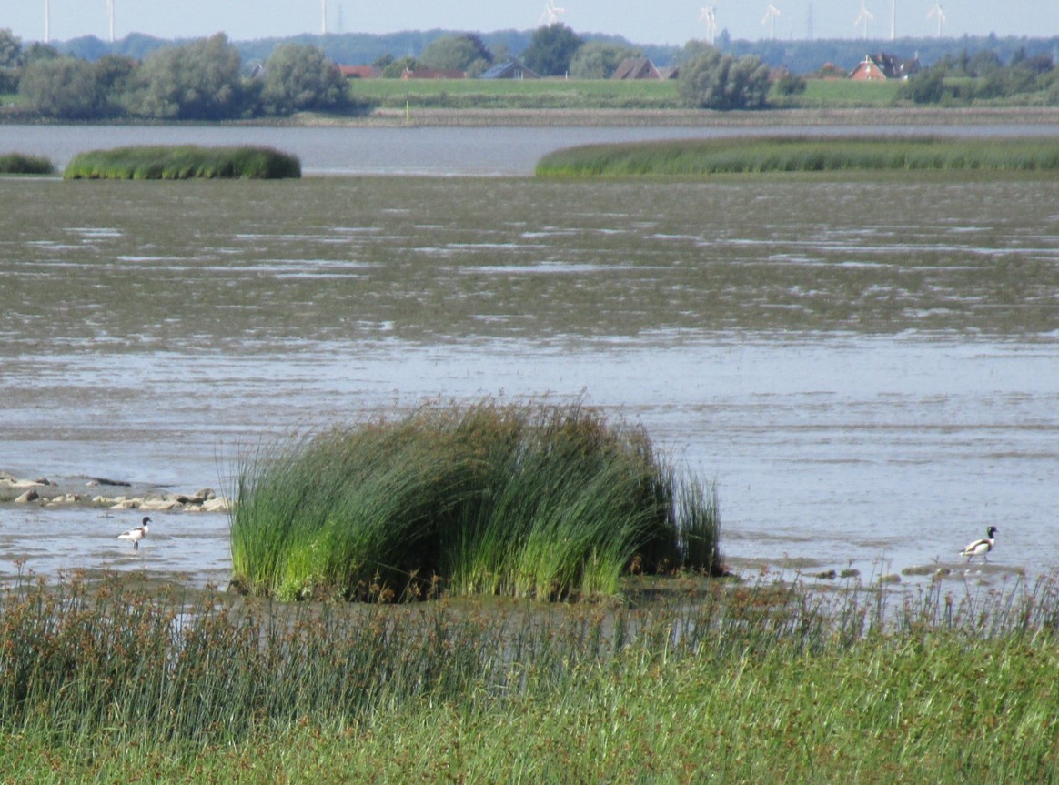 Fernblick über die Treibselsammlerstrecke – trotz weiterhin Überbreite und aktueller Niedrigwasserführung ist punktuell ein wenig Bewegung erkennbar.