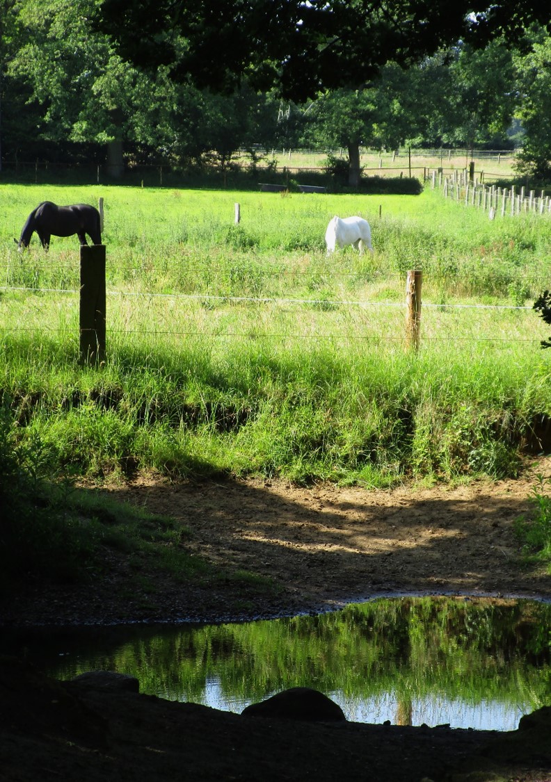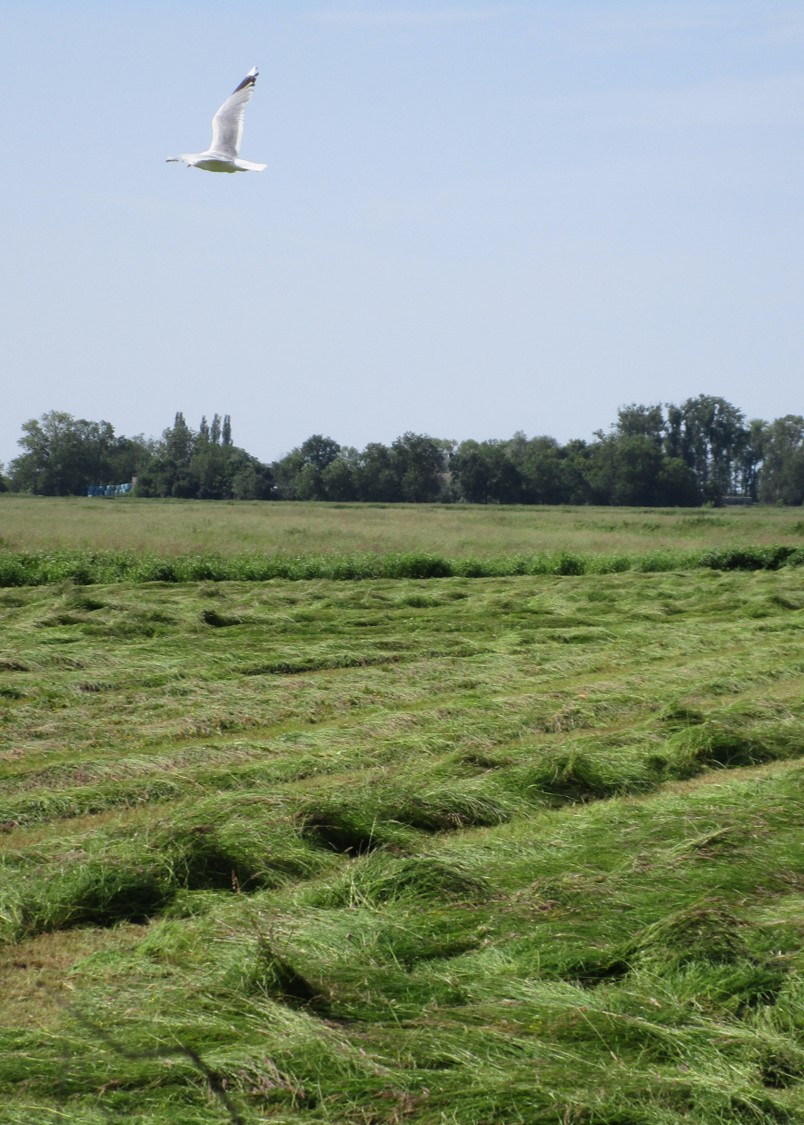 Vorbei geht`s auch an Pferdeland – Pferdeheu bleibt noch eine Weile in seiner grasig-blühenden Form stehen.