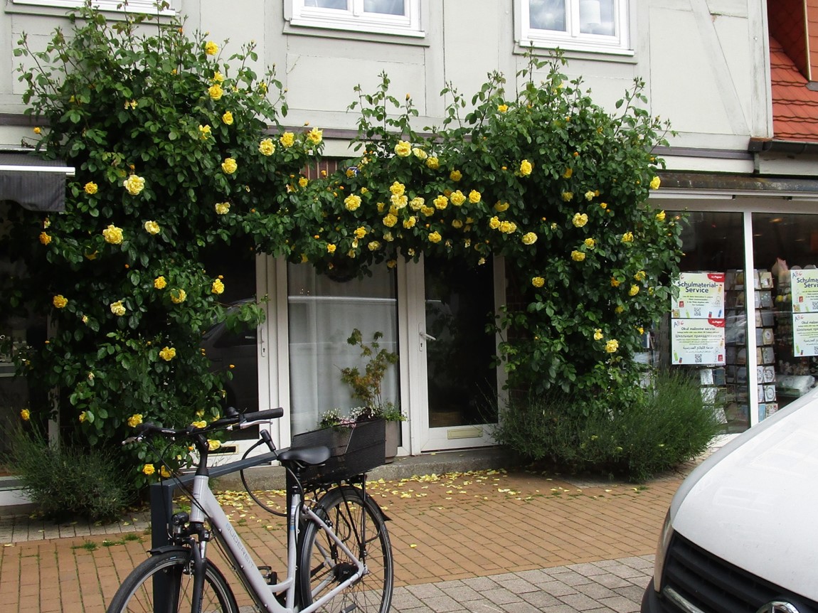Angesichts der Vielzahl Einzelrosen unterschiedlicher Farben vor Hausfassaden fragen wir uns, wieso solch „simple“ Pracht nicht öfter in Städten anzutreffen ist.