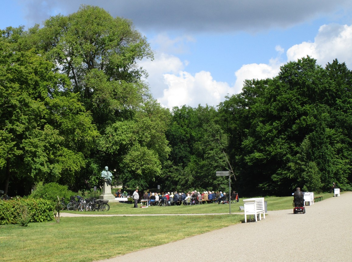 Tags drauf besuchen wir mit Geburtstagsgästen Schloss und Schlosspark. Die Sonne lacht, Schatten ist willkommen.