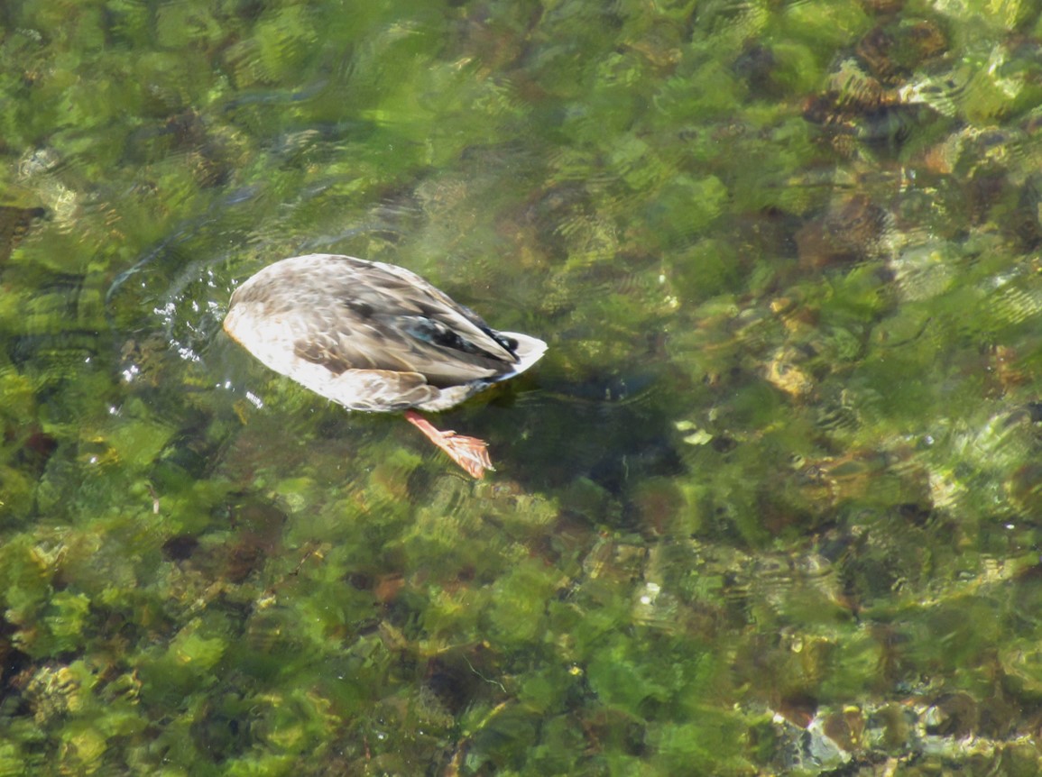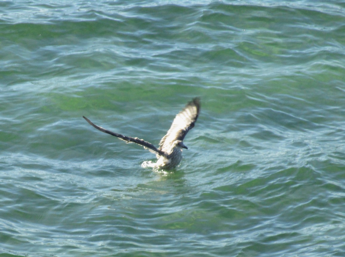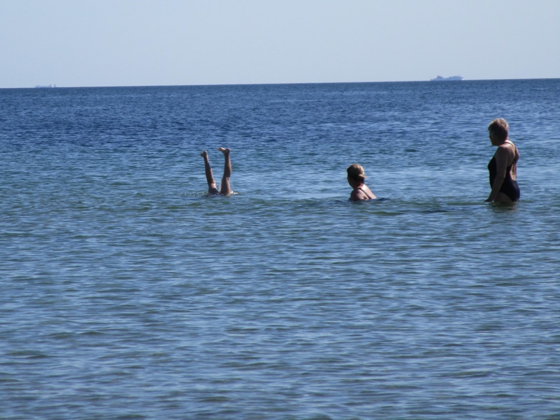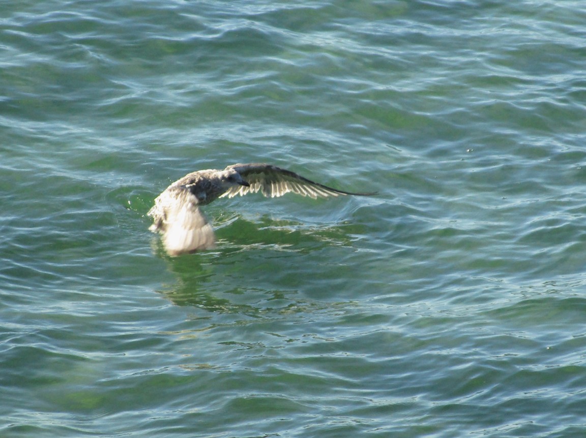 Fachkollegiales Gespräch bestätigte die Richtung meiner Vermutungen. Die höchstens 1 cm langen, un“greif“baren Glitzerdinger sind wahrscheinlich Heringe. Da die ca. 4 cm langen, gut erkennbaren Fischchen nicht „stab-„, sondern fast schlangenförmig herumwirbeln, halten wir die nicht für Hornhechte, sondern für Sandaale (ACHTUNG: die sind keine Aale, genau so wenig wie die oft begrifflich in den Mund genommene Aalmutter). – Gelegentlich schwimmt in den unglaublichen Jungfischschwärmen ein bei ca. 30 cm Länge noch junger Hornhecht vorbei – die nächste(n) Speise(n) ausgucken?