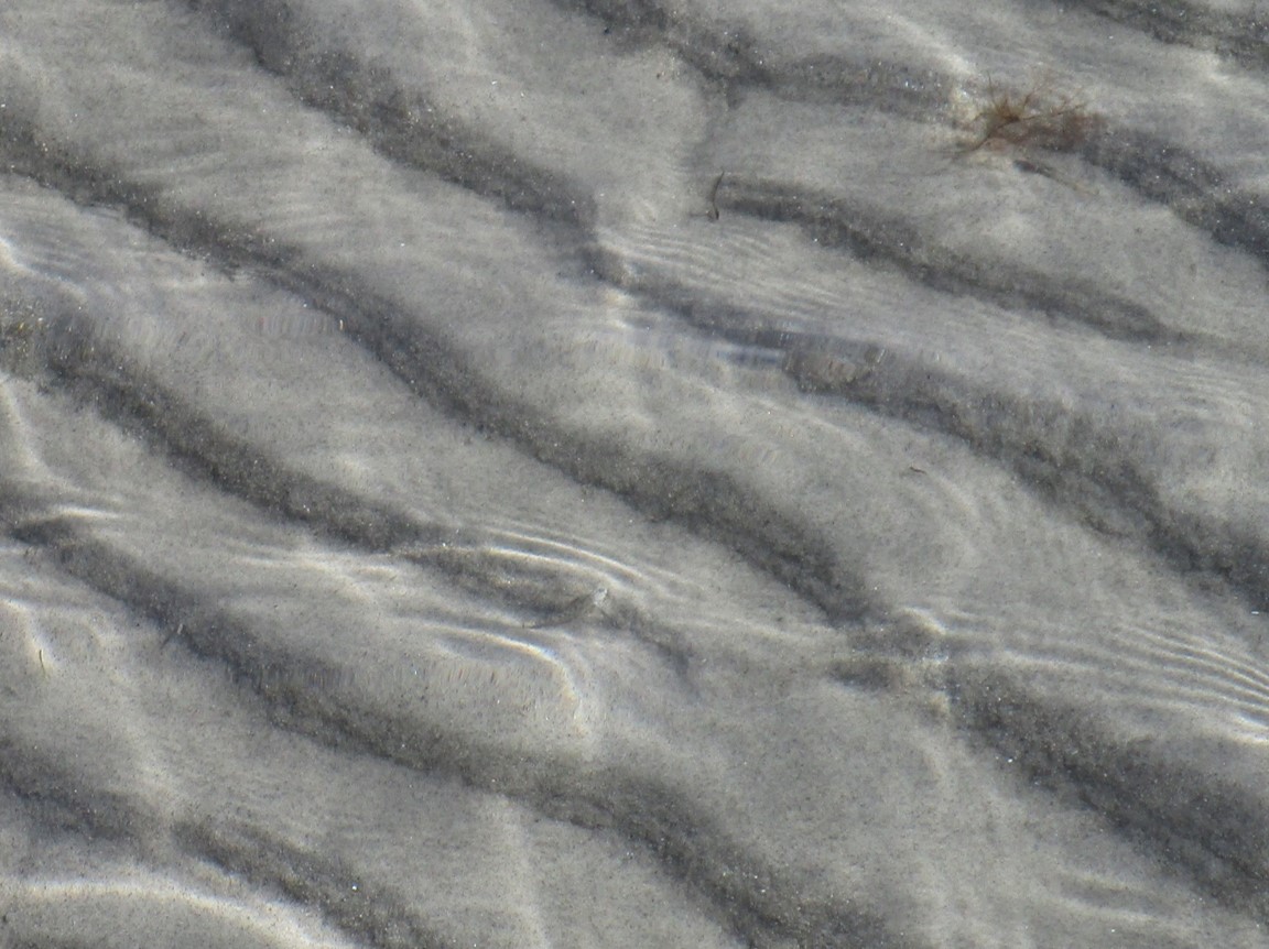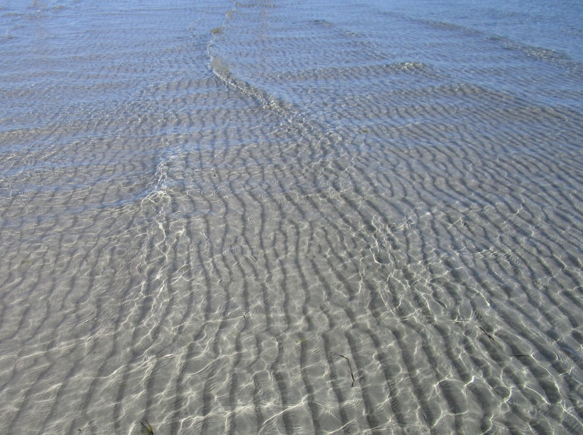 … desto deutlicher sind die Rippelmarken zu erkennen – auch, dass das klare Wasser mit „Schichtdicke“ = Wellenhöhe stärkere Einfärbung zeigt.