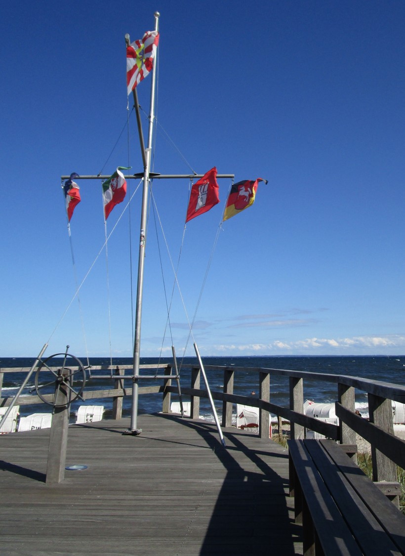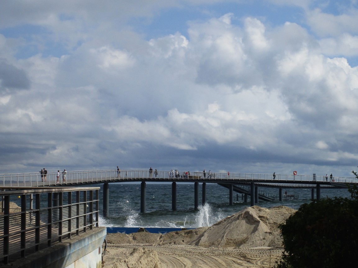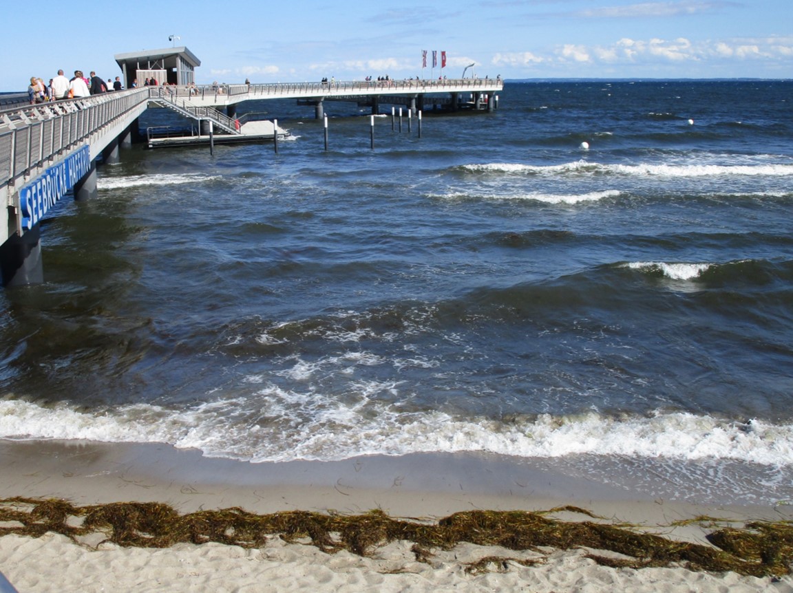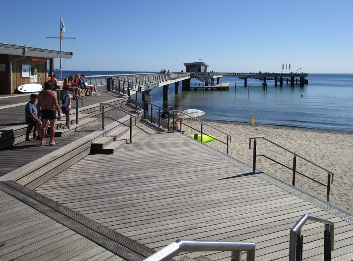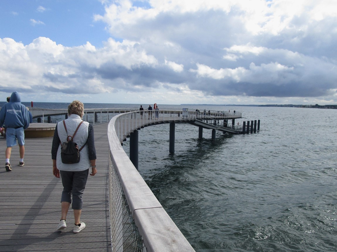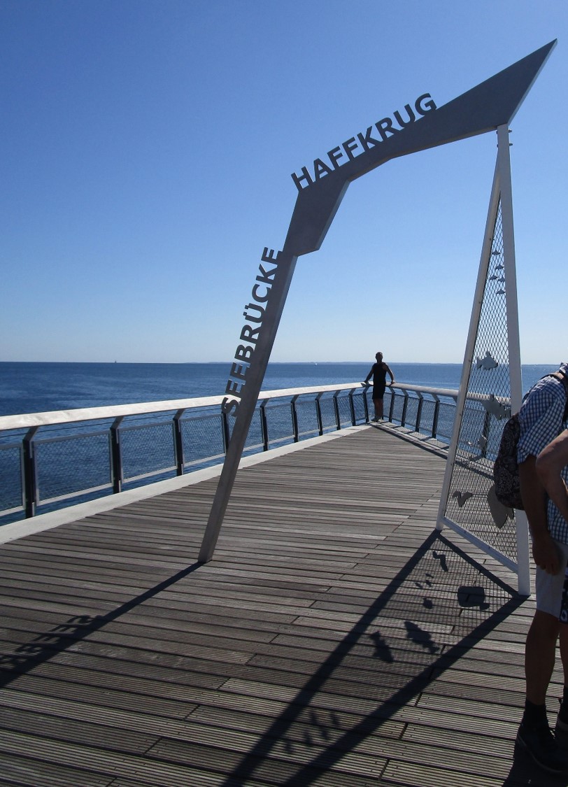 Zu Seebrücken wird noch mehr kommen. Man gönnt sich ja sonst nichts … – so hat, gern mal auf Google Earth ansehen, jeder Ort(steil) seine eigene, neue Seebrücke in unterschiedlicher (auch Draufsicht)Gestalt. Und selbstverständlich hat architektonisch-künstlerischer Freigeist da jeweils mindestens eine Großtat an (Un)Praktikabilität hinterlassen. „Highlights“, teils nur Anmerkungen ohne Foto (Schockmoment …) dazu, werden folgen.