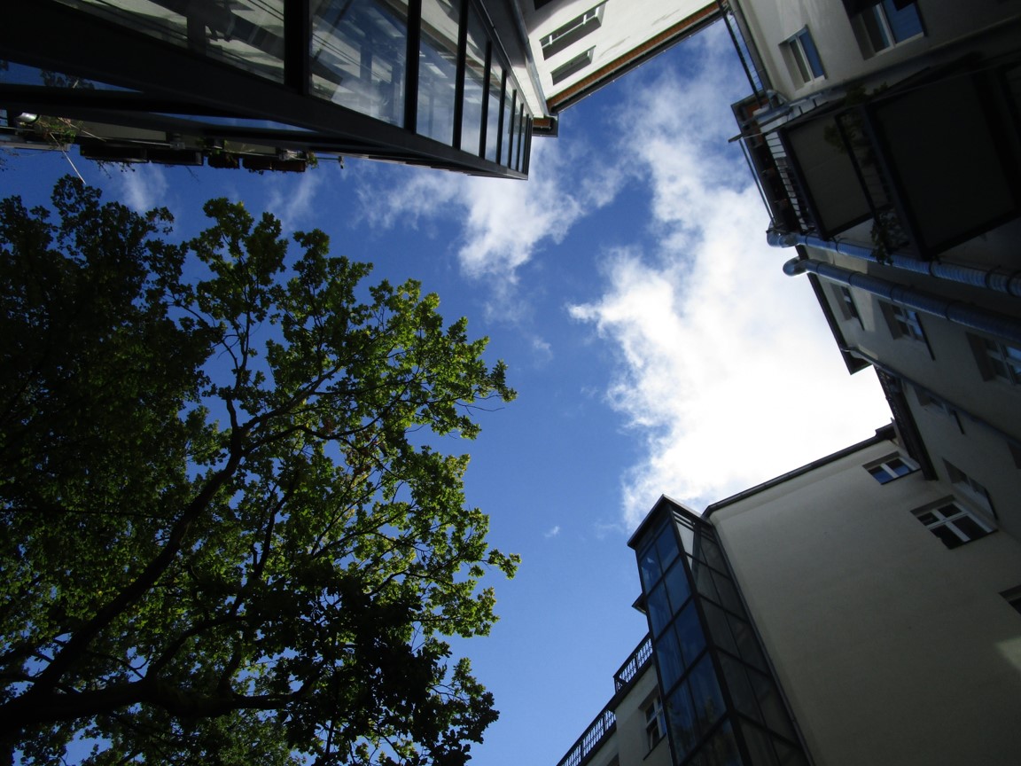Fix noch ein Blick durchs Grün in die fernere Bebauung.