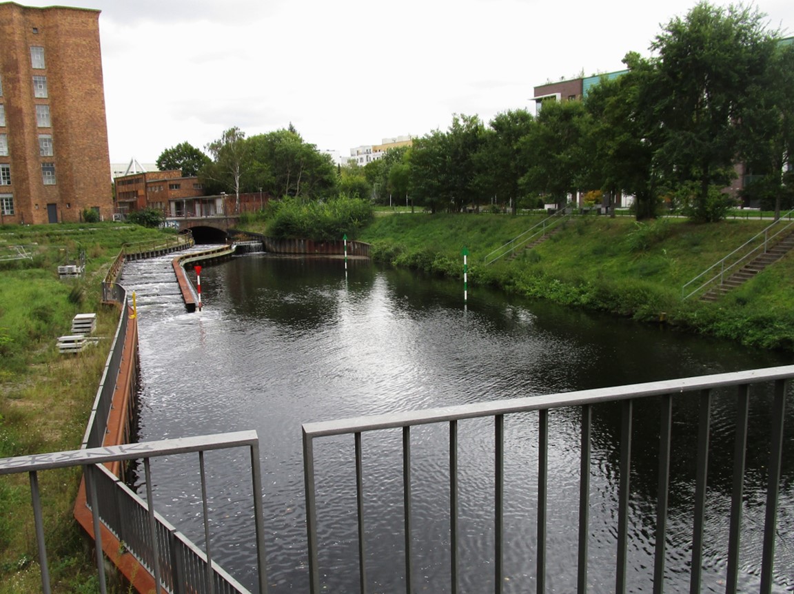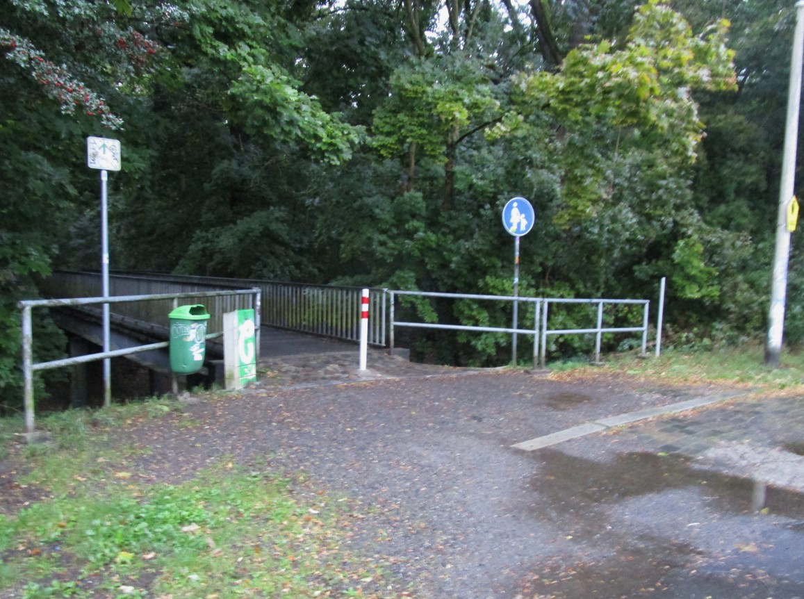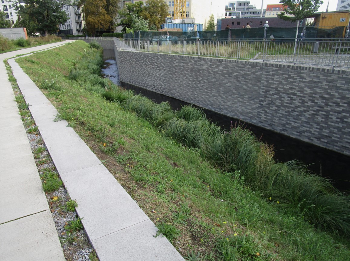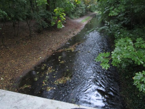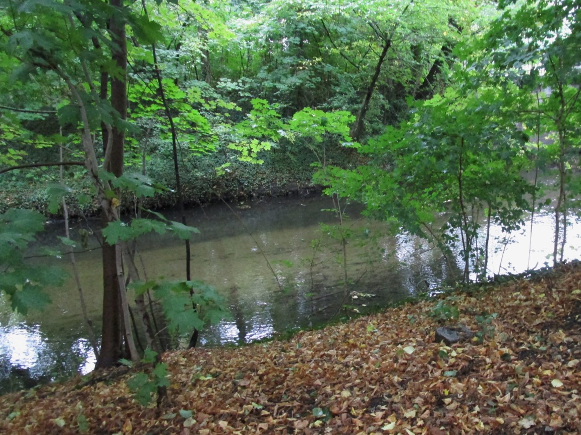 Parallel zum westlichen Teil des Poetenwegs fliesst die Parthe am Nordrand des Leipziger Gewässersystems Richtung Weiße Elster, zugänglich über eine Vielzahl Fuß-/Radwegbrücken.