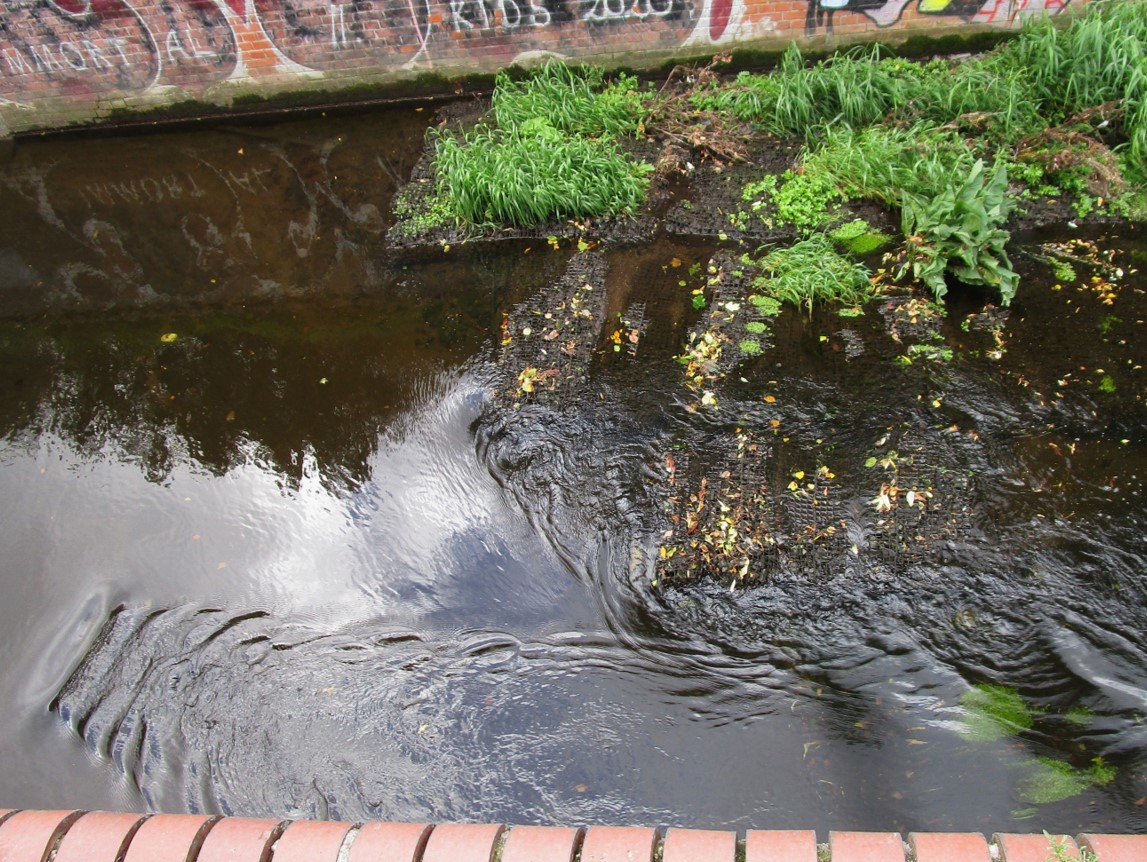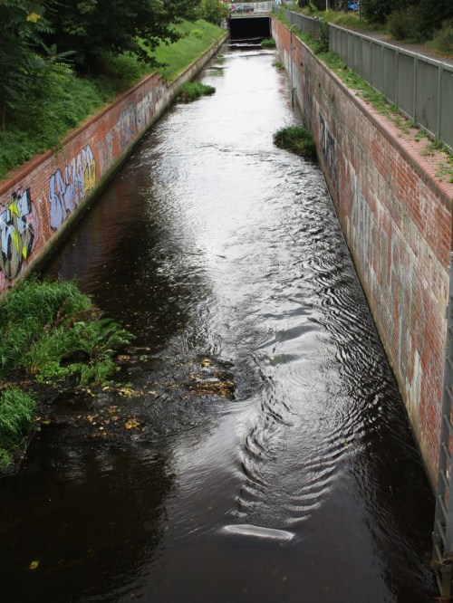 Na ja, insgesamt – bei gegebenem Gefälle, Fliessen – das Flüsschen anthropogen übertief eingeschnitten und überbreit.