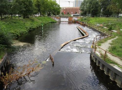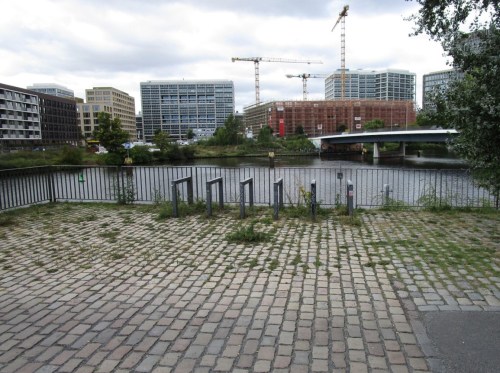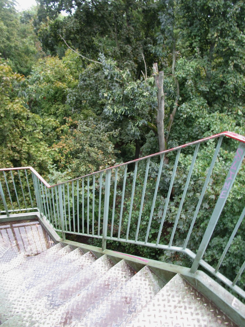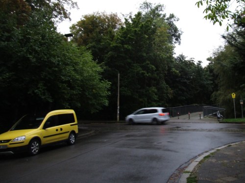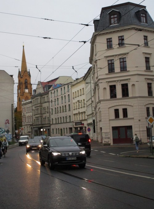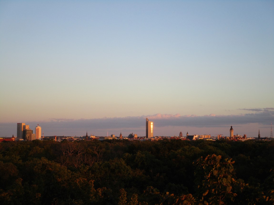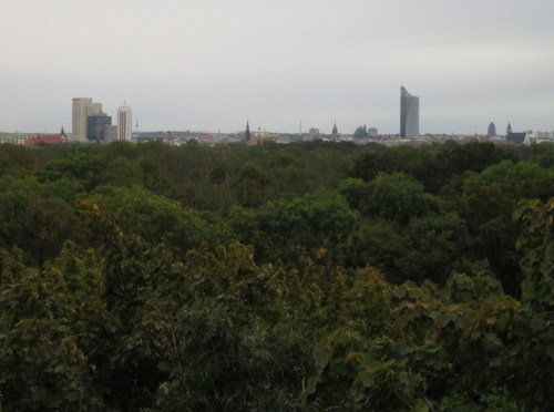 Ich quere die nächste Brücke ins Grün – will mal sehen, wo der „Wackelturm“ liegt, der mir durch Vorbeiradeln bei bisherigen Leipzigbesuchen entgangen ist.