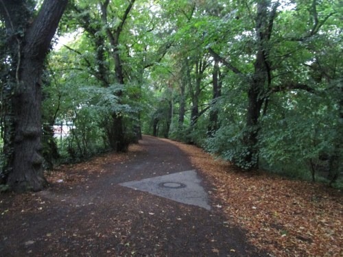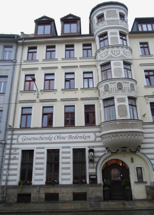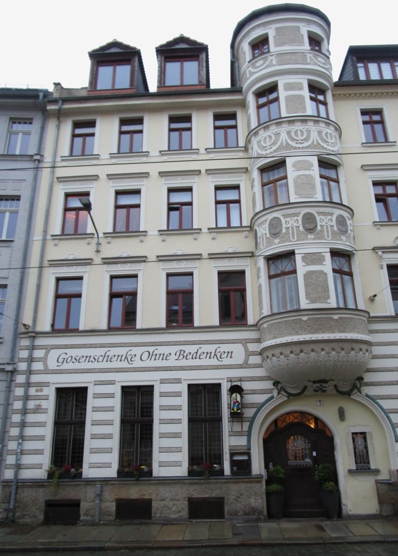 Der Biergarten der Gosenschänke, Eingang Menckestraße, ist (hier, auch) vom Poetenweg zugänglich.