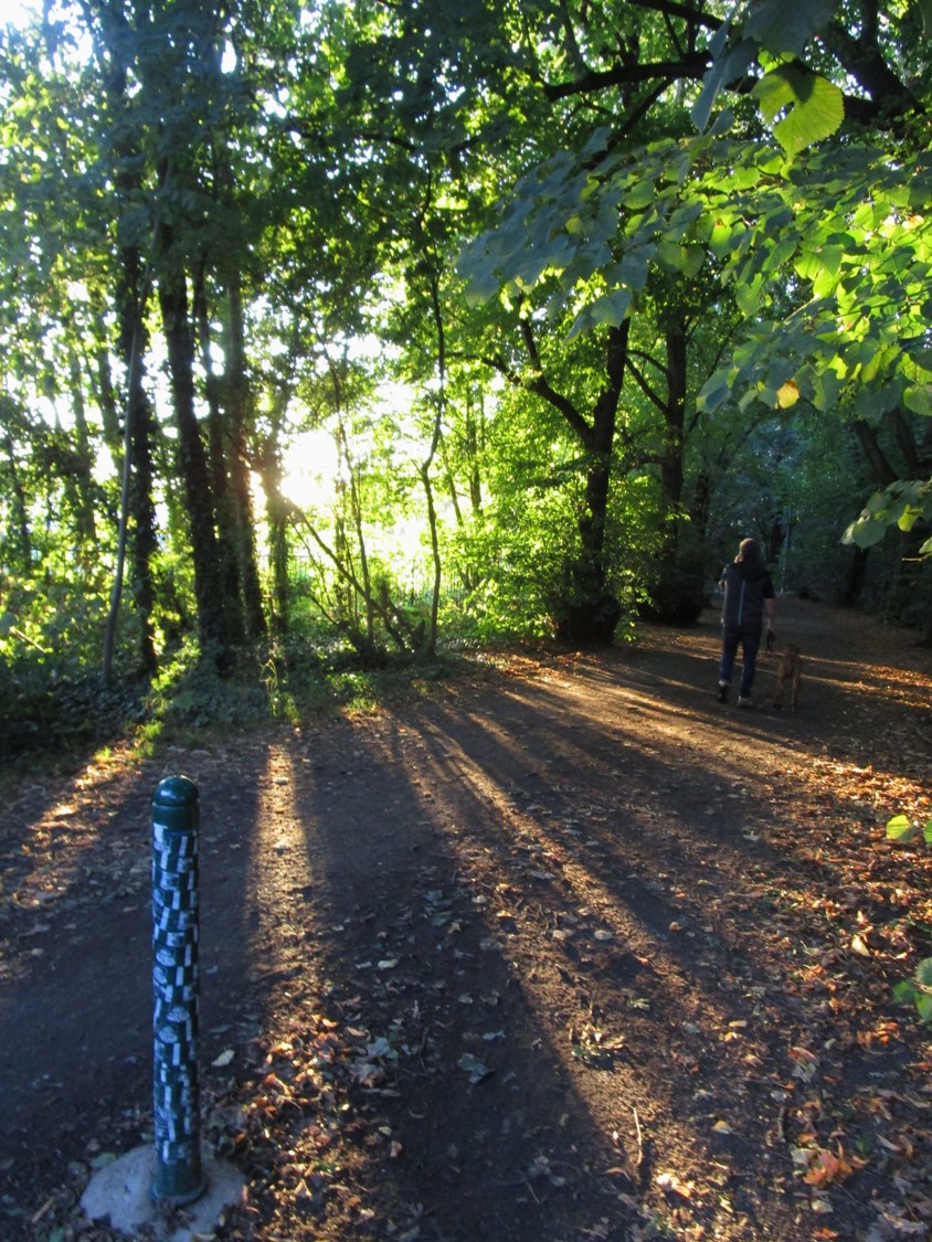 Ich konzentriere mich auf den herbstlichen Weg. Nächtlicher Schwachregen hat noch etwas schlammige Teilflächen hinterlassen.
