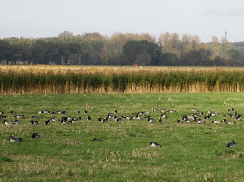 Querab Vogelstation – gerade hat sich ein großer Schwarm Nonnengänse einer bereits vorhandenen Gruppe zugesellt.
