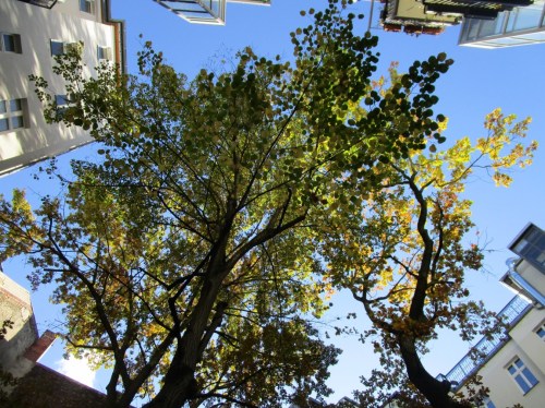 – Himmelsblick, als hätten die Altvorderen den Klimawandel mit erforderlicher Innenhofkühlung vorhergesehen –