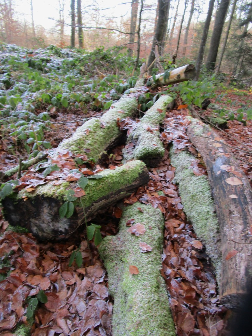 In Artenzusammensetzung und Entwicklung ist bereits der Wald eine Reise wert – Altholz mit Moos, bereift.