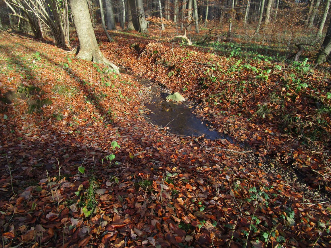 Die Sohle eines tief eingeschnittenen, oft sommertrockenen Waldbachs wurde in Abstimmung mit allen Beteiligten deutlich höher gelegt. So werden höhere Abflüsse besser im Wald gehalten. Er besitzt nun wieder einen stabileren Bodenwasserhaushalt, bleibt feuchter.
