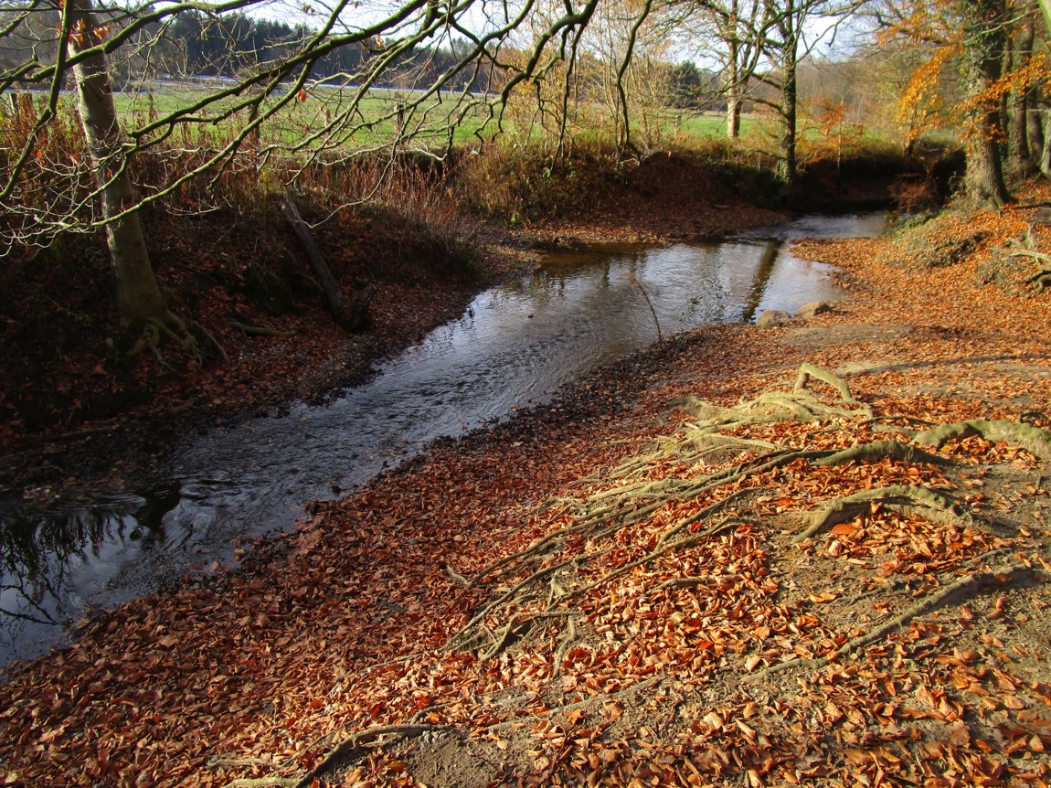 Diesen Wald besuchten wir, wie im Beitrag vom 23. November beschrieben, bei schönster Herbstbeleuchtung. An einem Zugang beschreibt der NABU Norderstedt die am Bach seit 2018 jährlich ergänzten Aktionen, die vom Wasserverband Mühlenau und der Edmund Siemers-Stiftung gestützt bei Zustimmung der Kreisbehörden stattfinden.
