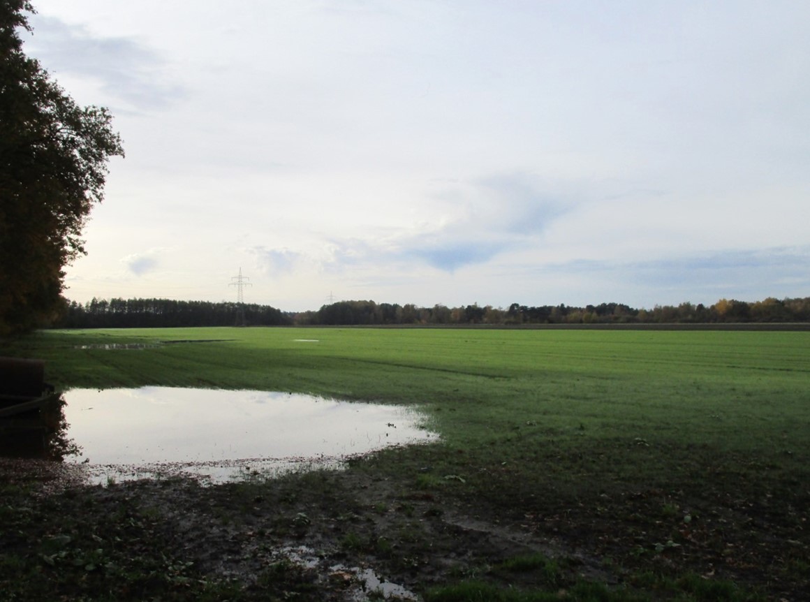 Was für eine Hoch!Fläche! Der jüngste, reichliche Niederschlag staut sich auf lehmiger Moräne ein, gibt eine Vorstellung, wie hier einmal ein Hochmoor entstehen konnte.